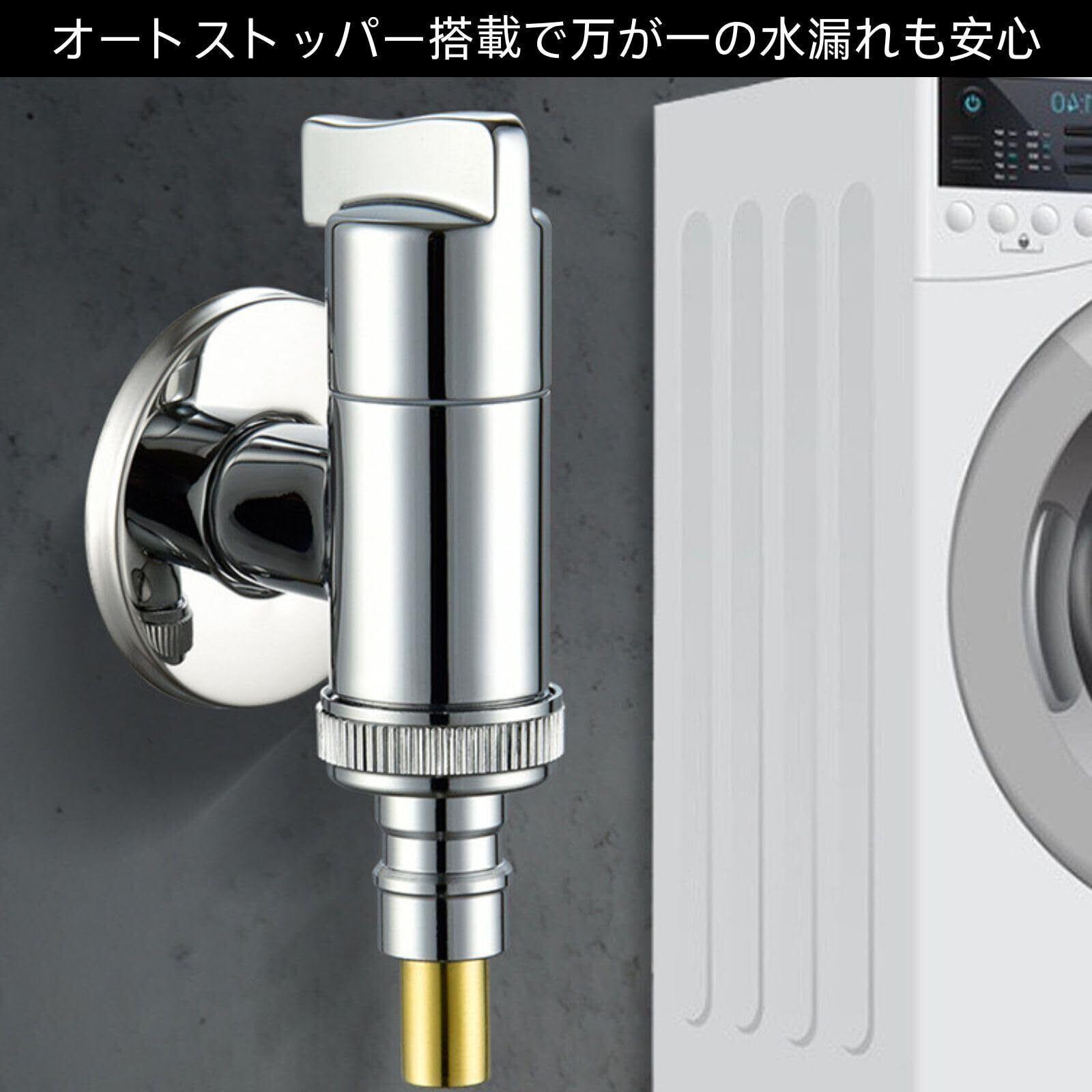 【2025最新】HOTQ 洗濯機用水栓 ストッパー付き水道蛇口 単水栓給水 洗濯機蛇口自動止水栓 オートストッパー 逆止弁付き 単水栓給水万能水栓自動止水機能付き
