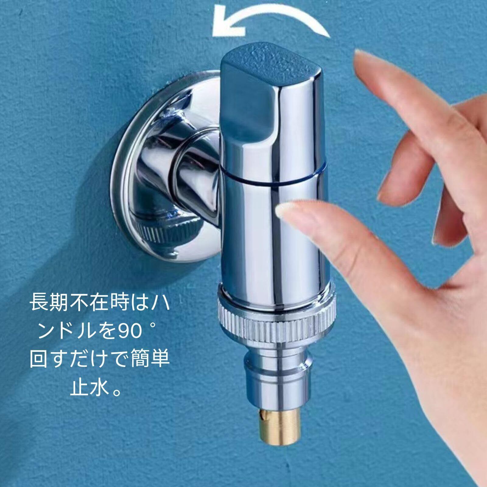自動で水止めるオートストッパー機能搭載。2階以上の方も漏水心配なし。長期不在時はハンドルを90°回すだけで簡単止水。