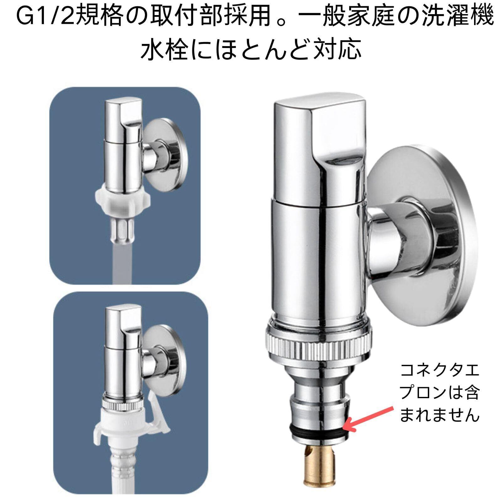G1/2規格の取付部採用。一般家庭の洗濯機水栓にほとんど対応。