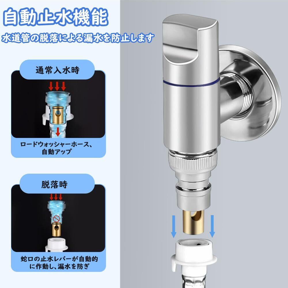 【新着商品】洗濯機用水栓金具 純銅鋳造 洗濯機 水栓 緊急止水弁付単水栓 露出タイプ単水栓 緊急止水弁付 自動止水 逆流防止弁 水漏れ防止 取り替え用 露出タイプ・埋込タイプ共通機能 スペースの節約 インストールが簡単 洗濯機 万能ホーム水栓用