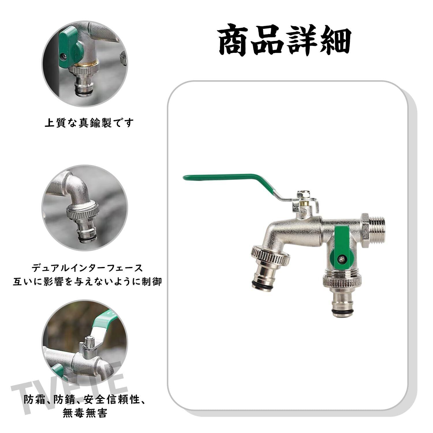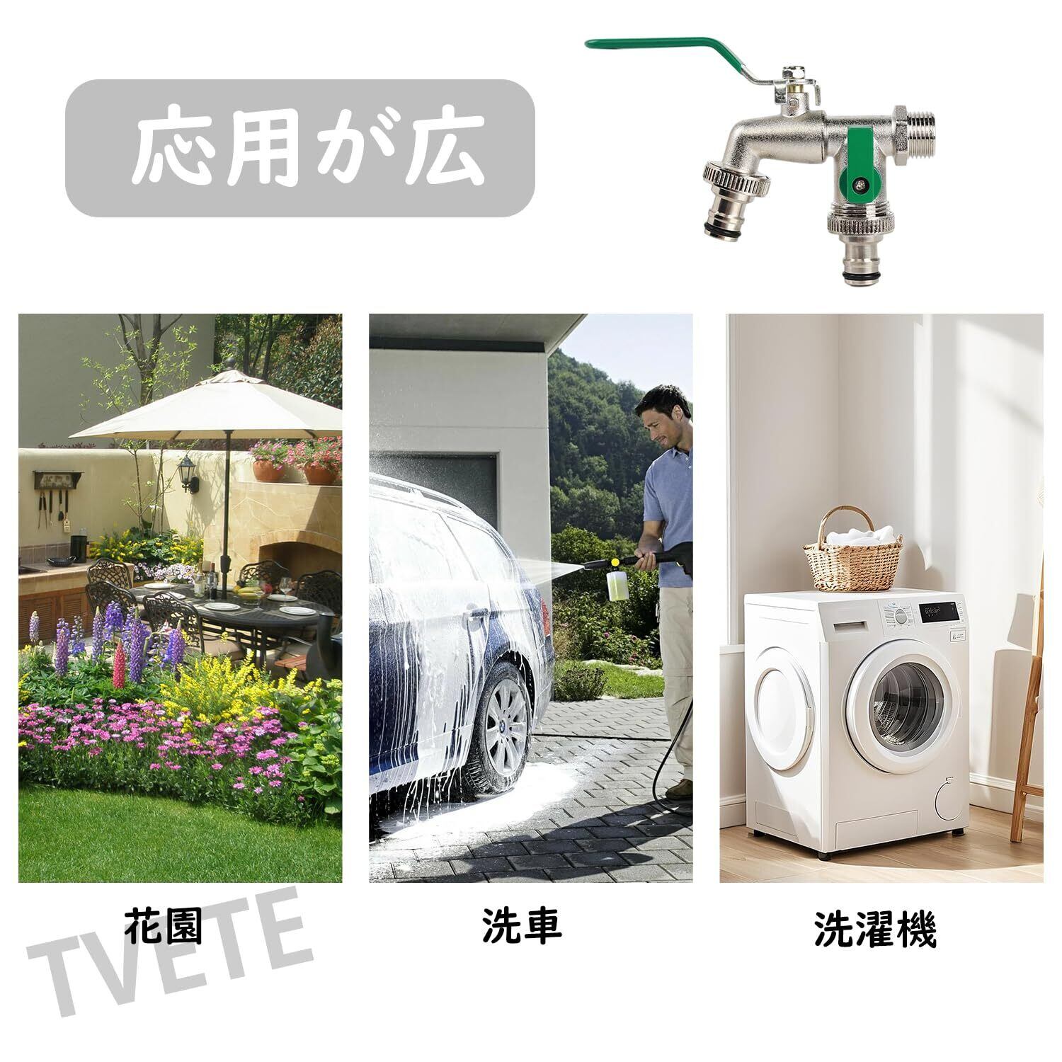 【幅広い適用シーン】この二口蛇口は汎用性があり、庭、工業、家庭など幅広いシーンに適しています。 灌漑、洗濯機の接続、洗車、庭のホース、スプリンクラー、雨水タンクなどの接続など、簡単にできます。 屋外での水使用の安全性をするだけでなく、お客様の多様な水需要にもお応えします。