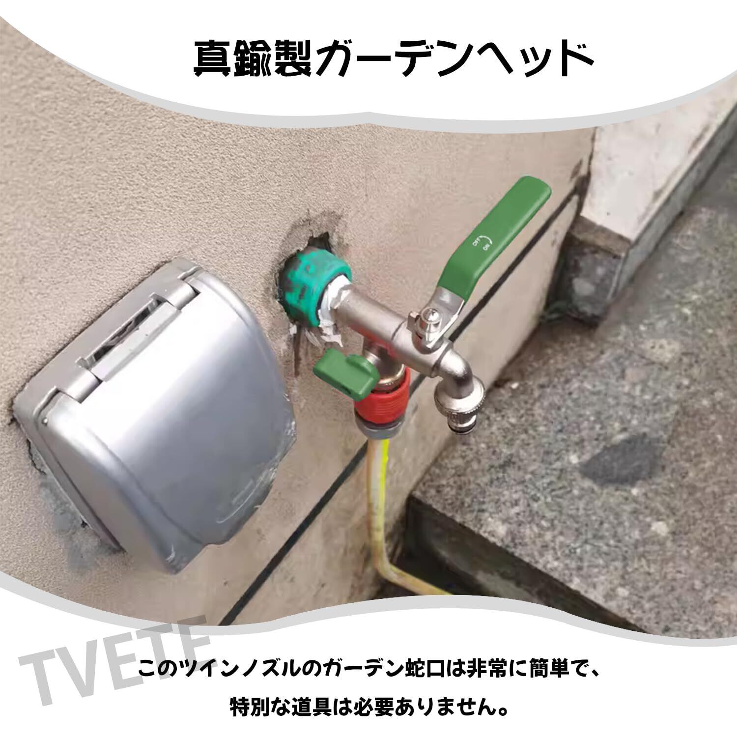 ガーデン中庭 二股蛇口 二口ホーム水栓 双口水栓 洗濯機用水栓 洗濯機用水栓 水道 二股 二口横水栓 2口 分岐栓 屋外用蛇口 (グリーン)