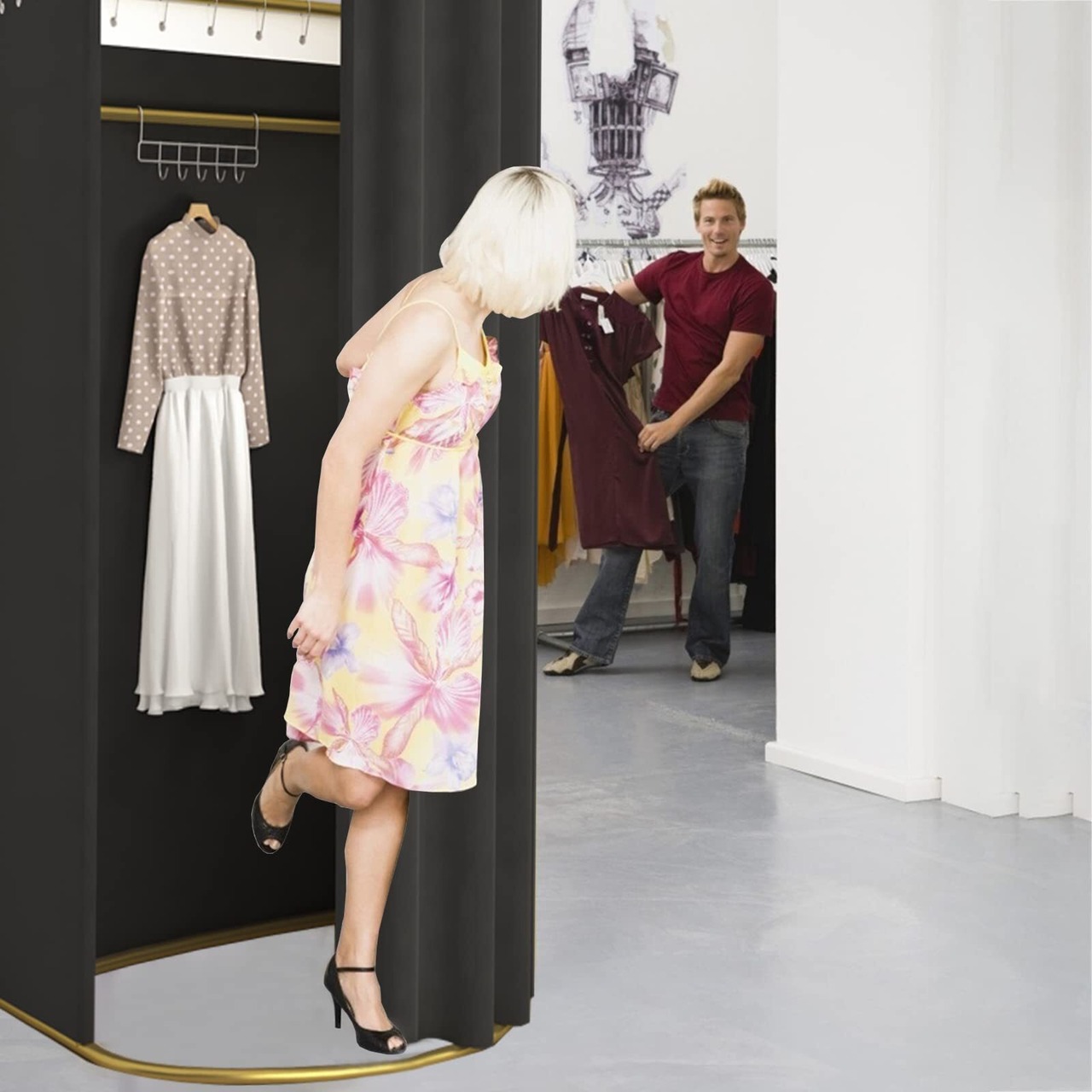 シェーディングカーテン付き衣料品店フィッティングルーム、ポータブル一時 簡易モバイル試着室 プライバシー保護ドレッシングルーム、折りたたみ式モール洋服店おしゃれな更衣室とディスプレイラック、設置簡単 (ブラック)