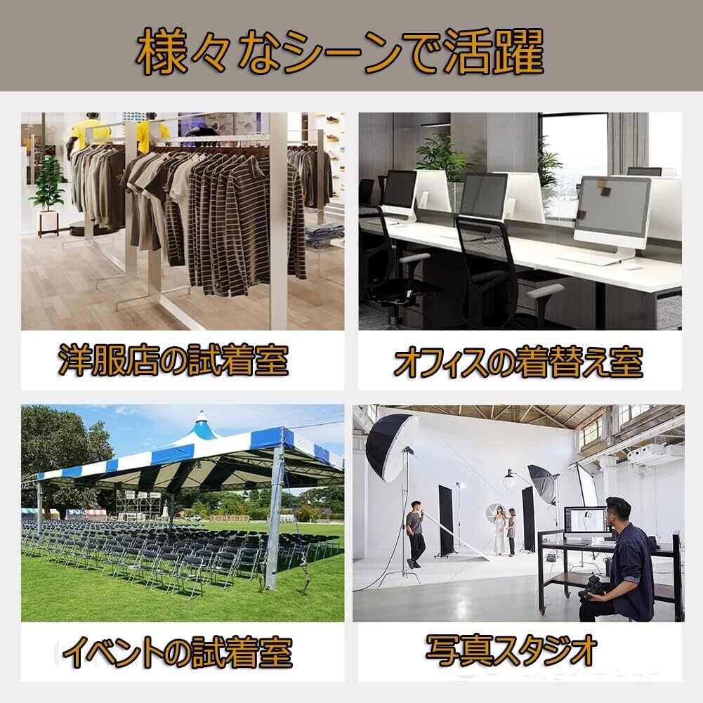 【広い用途&メンテナンス】衣料品店、ショッピングモール、オフィス、キャンプ、モデルショー、フォトスタジオ、ダンスクラスなど、様々な場所で使いいただけます。洗濯機で丸ごと洗える可能です。折りたたまま発送するため、カーテンにしわがありかねないです。その場合にはアイロンをかけてご使用ください。