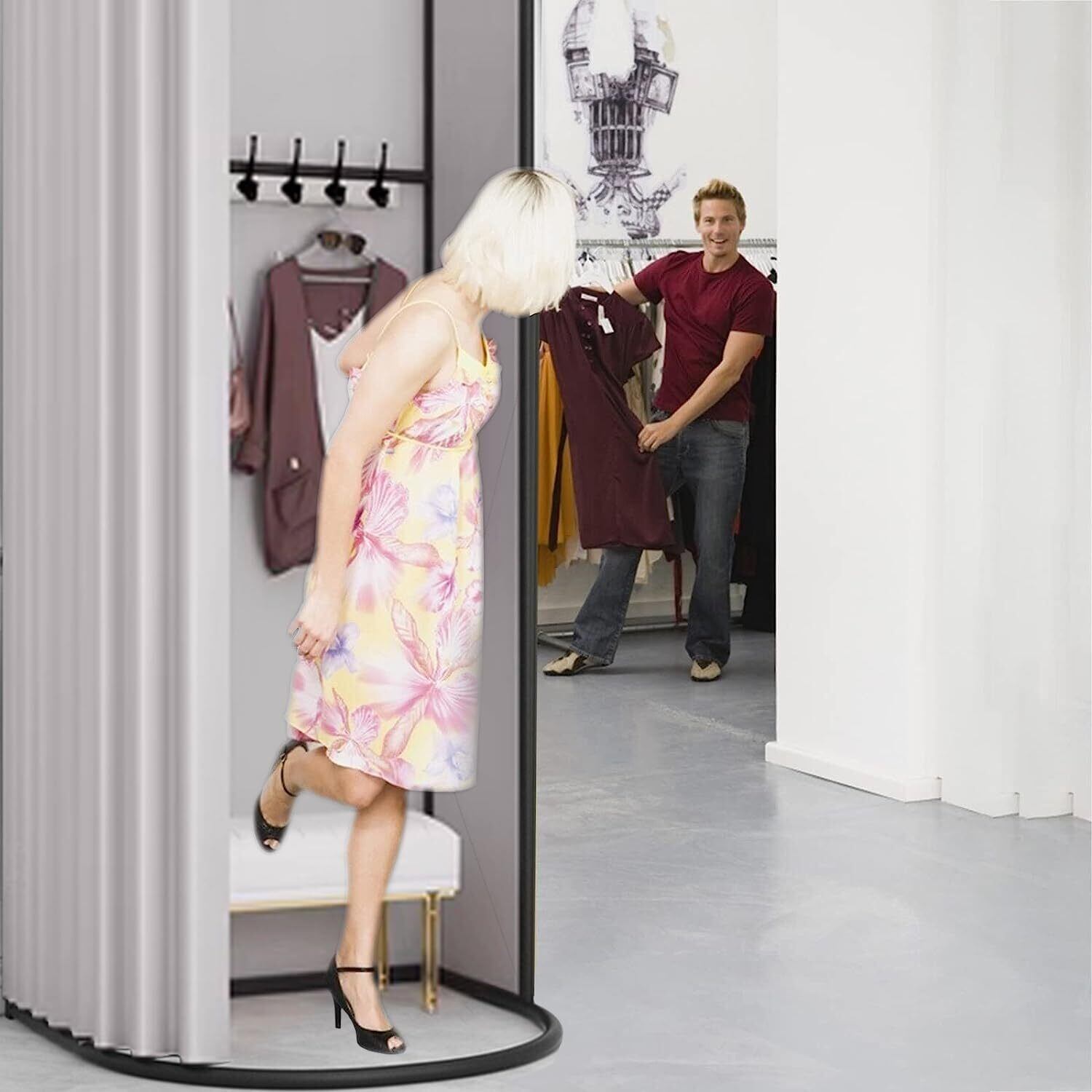 【在庫限り】フィッティングルーム 試着室 更衣室 着替え 遮光カーテン シェーディングカーテン付き 衣料品店 洋服店 催事場 安定感 広いスペース 組立簡単 フック付き 仮設 取外し 持ち運び 耐久性 幅85CM×奥行80CM×高さ200CM グレー