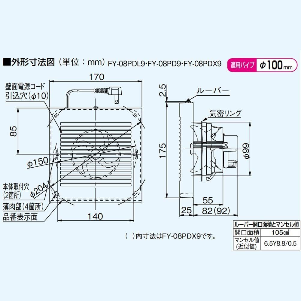 パナソニック(Panasonic) パイプファン 排気形 (プラグコード付) FY-08PD9