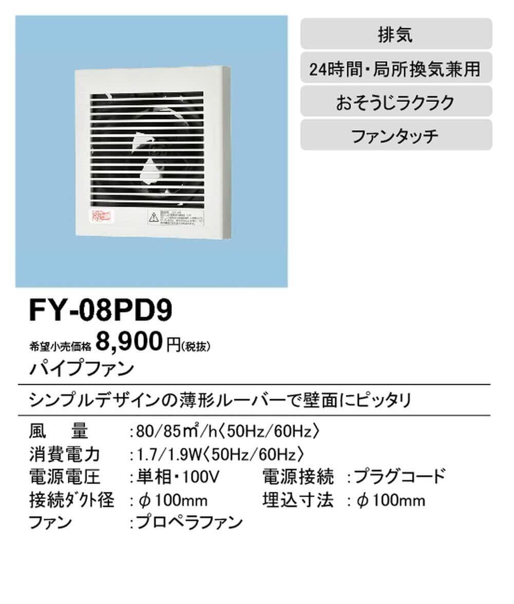 【特価セール】パナソニック(Panasonic) パイプファン 排気形 (プラグコード付) FY-08PD9