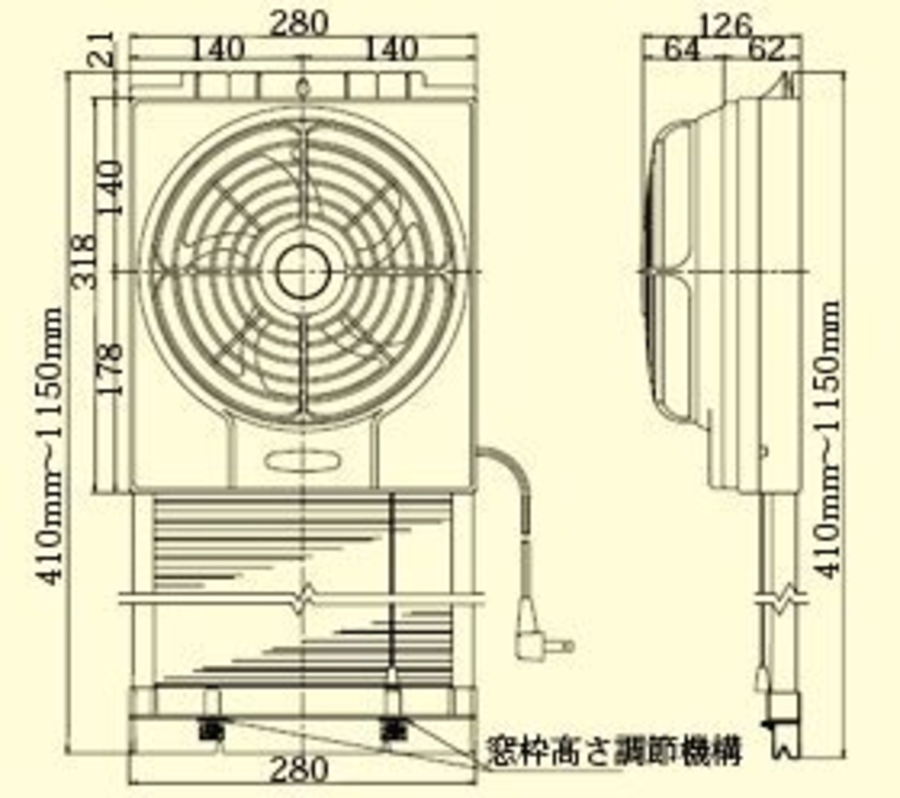 ●窓の開閉自由。窓の左右どちらにも取り付け可能。