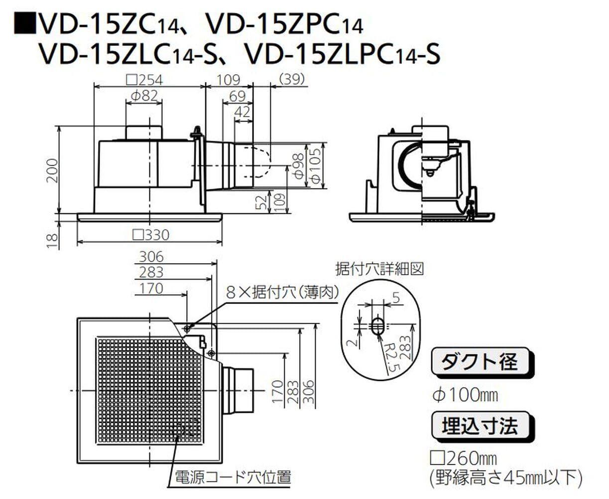 三菱電機(MITSUBISHI ELECTRIC) 天井埋込形換気扇 低騒音 VD-15ZC14