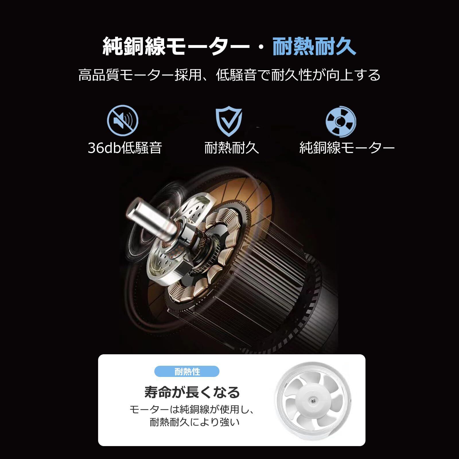 【省エネ・低騒音】本換気ファンは密封された純銅の軸受けモーターを採用し、動作がより安定し、換気がより効果的になります。1時間稼働して、電気代はわずか0.67円!ABS製の7枚ファンブレード、高効率で低騒音です。