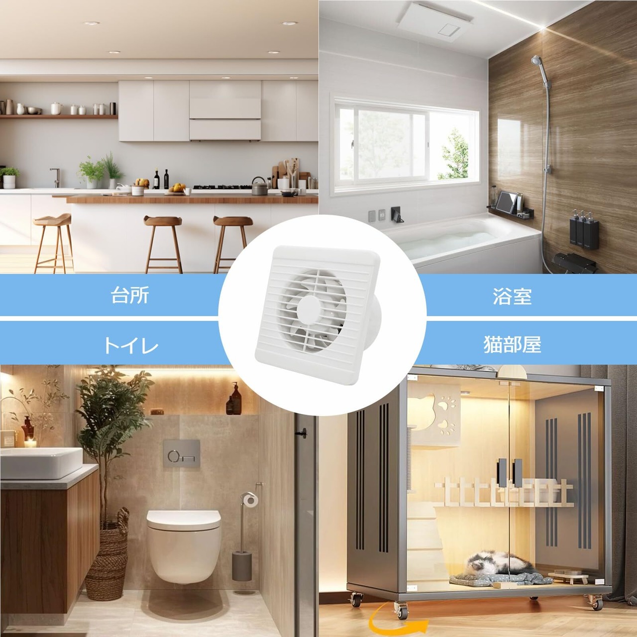 【幅広い用途・換気扇適用面積】壁用換気扇、浴室換気扇、トイレ換気扇、キッチン換気扇、窓用排気扇としてはおすすめです。換気扇適用面積:本製品風量は90m³/h、一つ換気扇は5㎡の空間利用可能です。