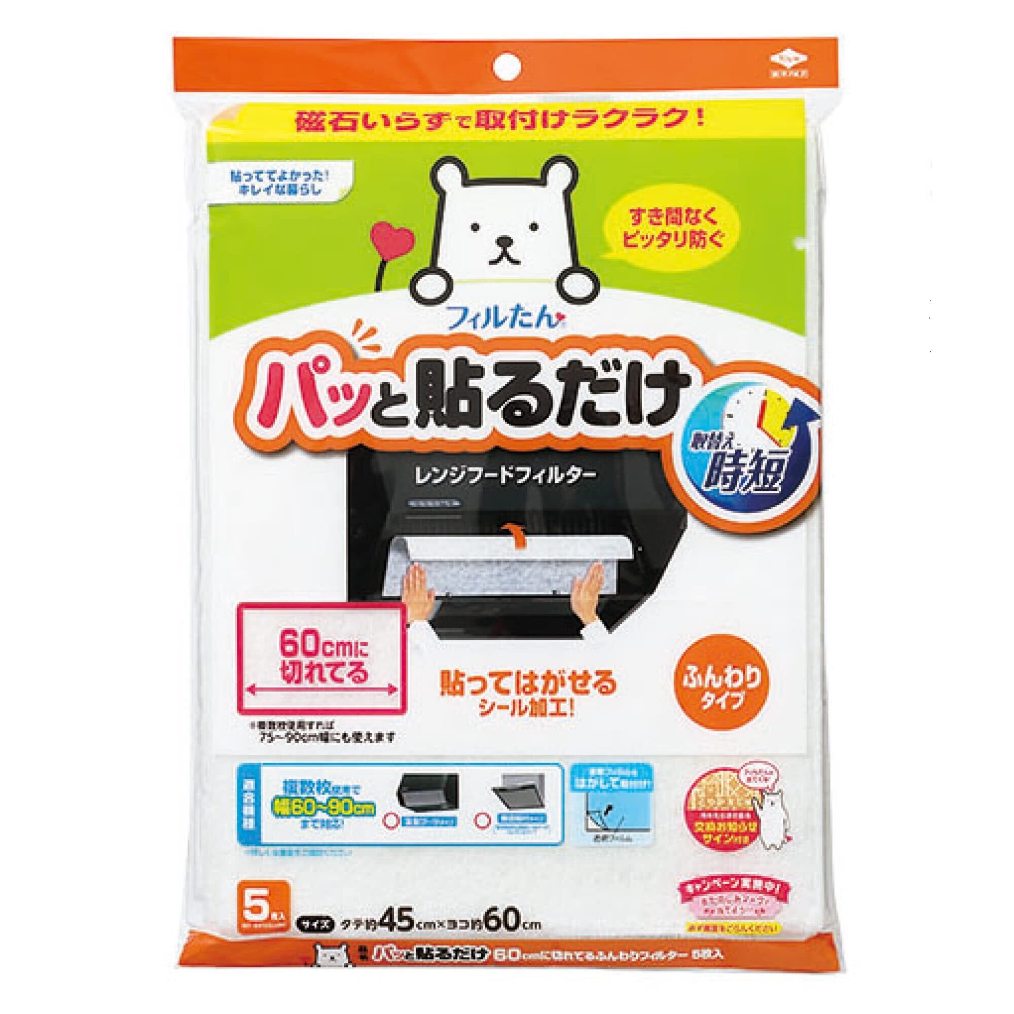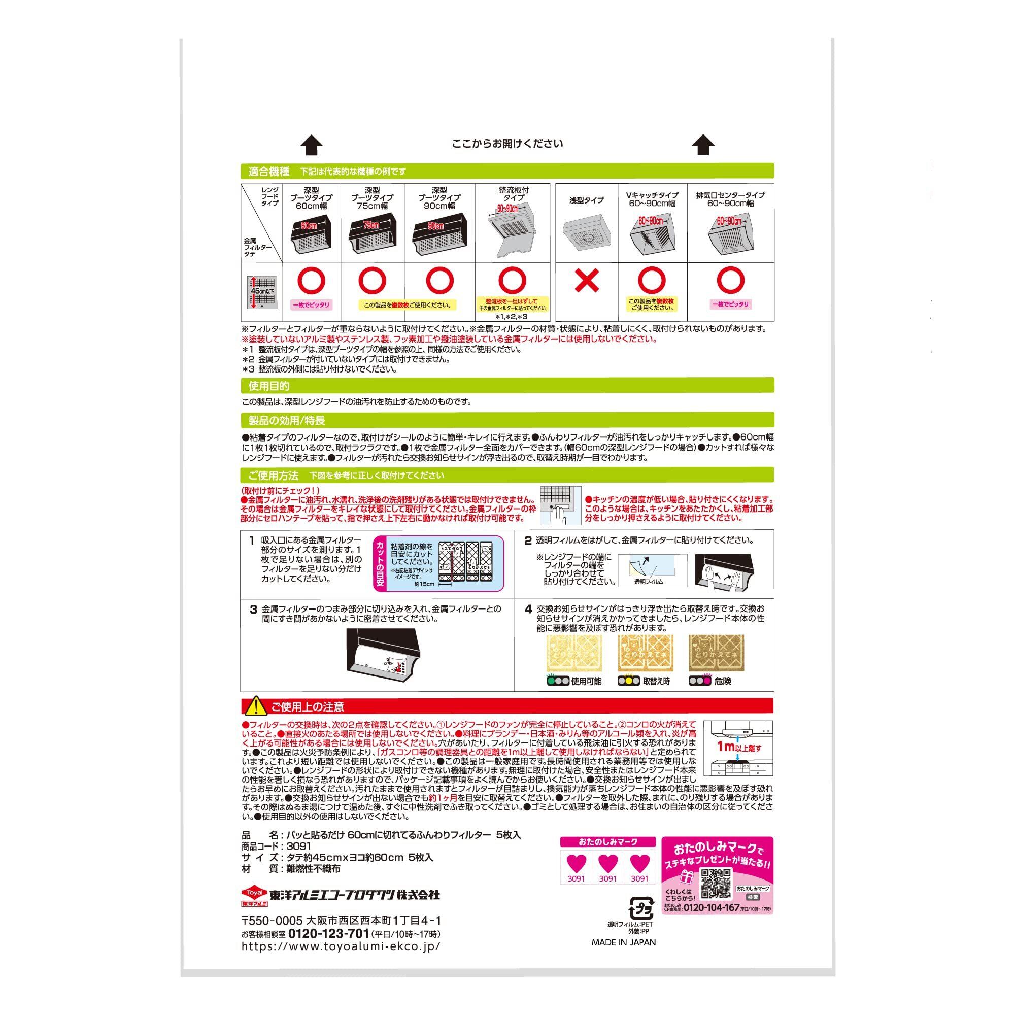 東洋アルミエコープロダクツ 東洋アルミ パッと貼るだけレンジフードフィルター 約45cm×60cm 磁石要らずでカンタン 60cm幅のレンジフードにぴったり 換気扇 3091 5枚入 ホワイト