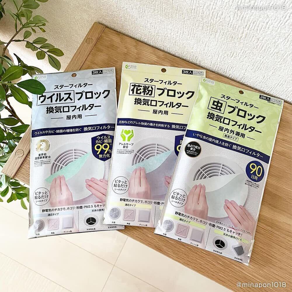 【在庫限り】虫ブロック 換気口フィルター 通気口フィルター 虫よけ 防虫 貼るだけ カバー不要 屋内外兼用 21x21cm 3枚入 スターフィルター 吸気口 給気口 ホコリ 防塵 PM2.5