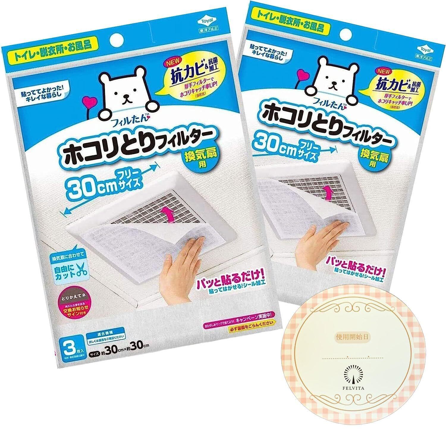 東洋アルミ パッと貼るだけ ホコリとりフィルター 換気扇用 約30cm×30cm 3枚入 X2個セット felvita 使用開始日確認シール付