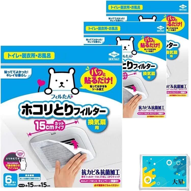 【3個セット】東洋アルミ パッと貼るだけ ホコリとりフィルター 換気扇用 15cm 6枚入 計18枚 + おまけ付き(オリジナルテッシュ)