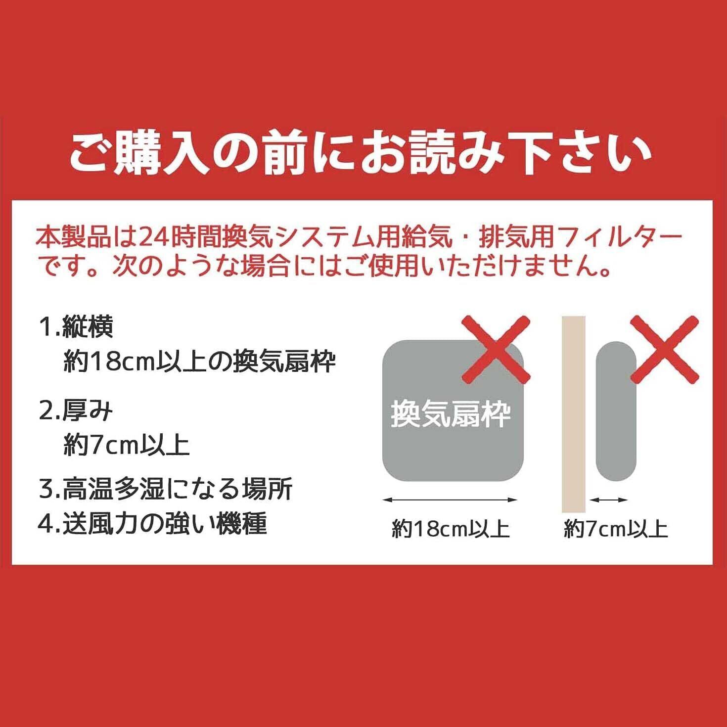 縦横約18cm以上、厚み約7cm以上の換気扇枠にはご使用いただけません。