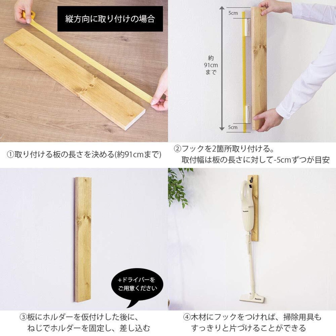 ●厚みが15~19mmのワンバイ材やパイン材にご使用できます。板の長さは約91cmまで使用可能。