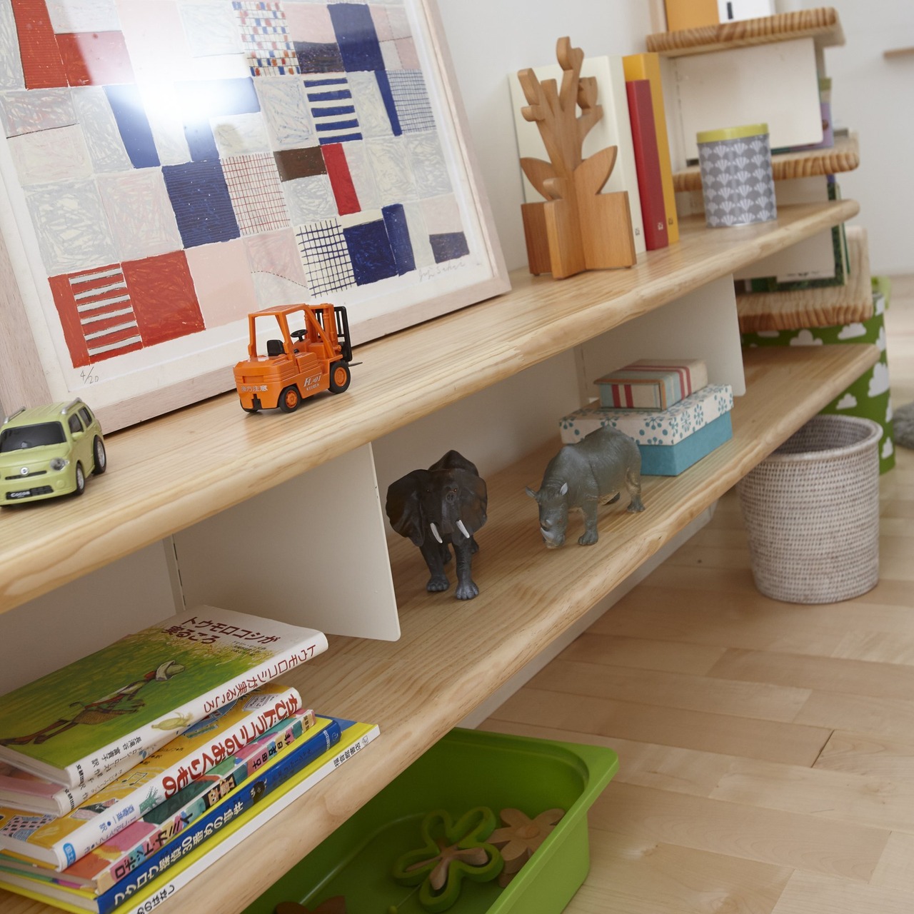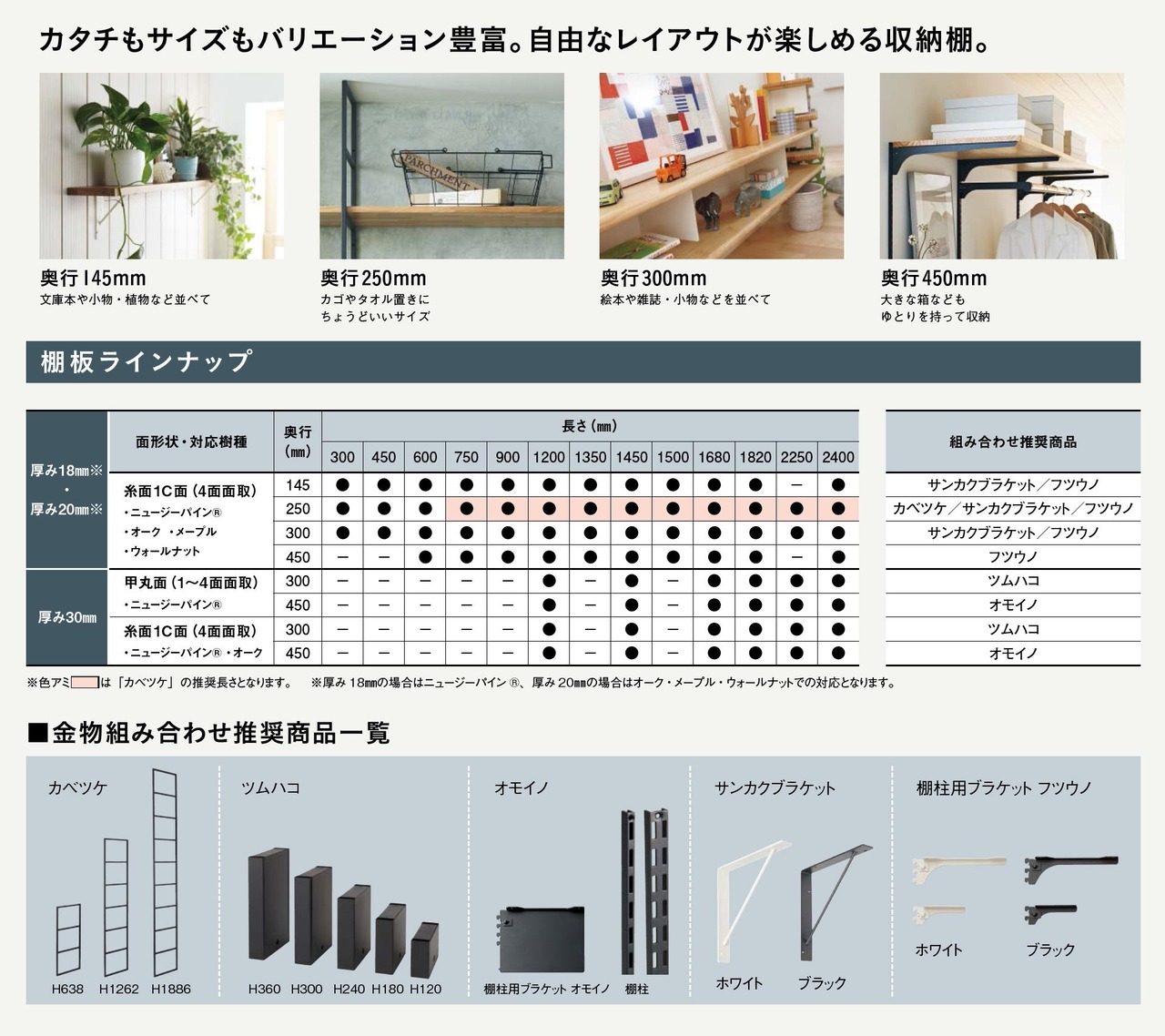 棚板奥行 300mm:絵本や雑誌、小物などを並べて。