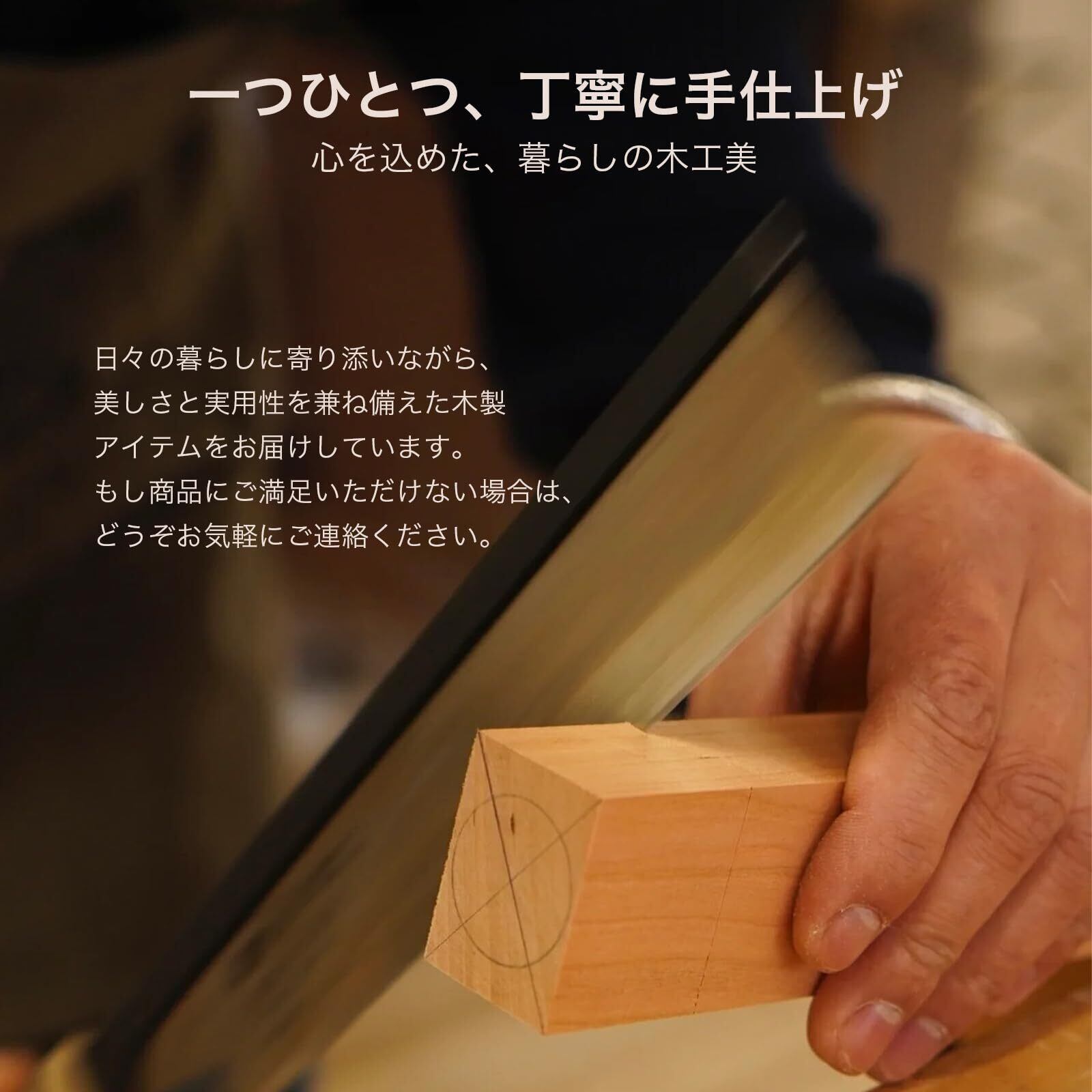 【安心の塗装・仕上げ】天然木用のワックスオイルを使用し、時間をかけて何度も丁寧に塗り重ねています。 木の自然な風合いをそのまま残し、塗料不使用・ホルムアルデヒドゼロで、安心してお使いいただけます。