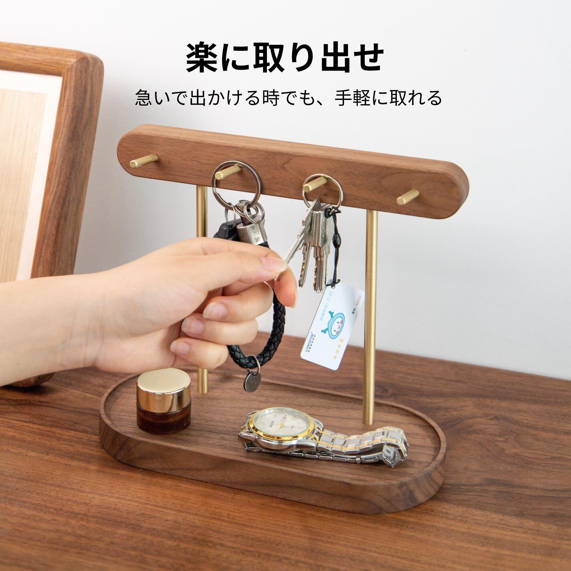 Muso Wood 鍵置き 木製 鍵スタンド 玄関収納 小物入れ 雑物置くトレイ アクセサリーかけ 腕時計メガネスタンド 鍵収納 (ウオールナット)