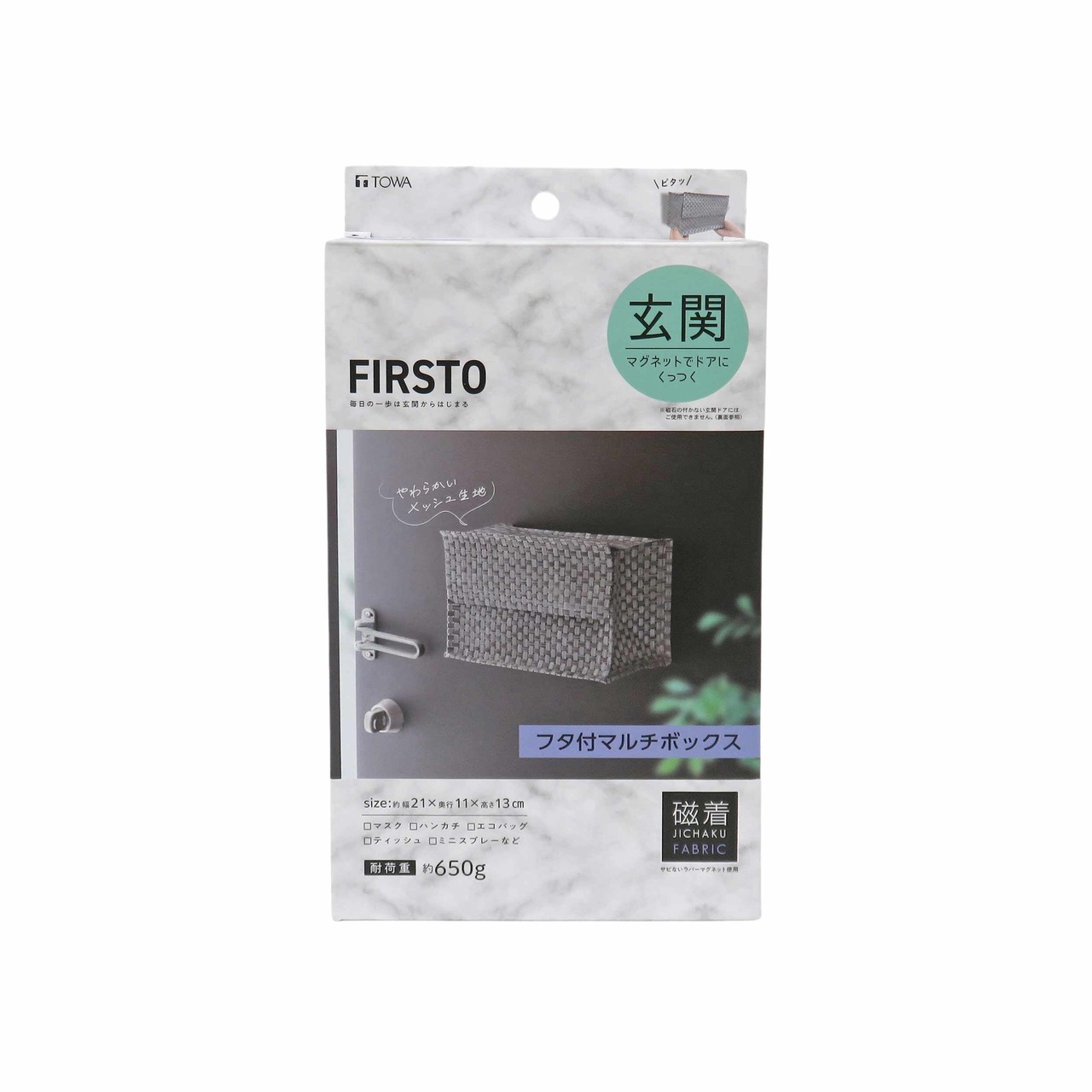 【特価セール】東和産業 F マグネットフタ付マルチボックス 玄関収納 収納ボックス 浮かせて 耐荷重約650g 小物ボックス フタ付 メッシュ生地 玄関ドア 85772