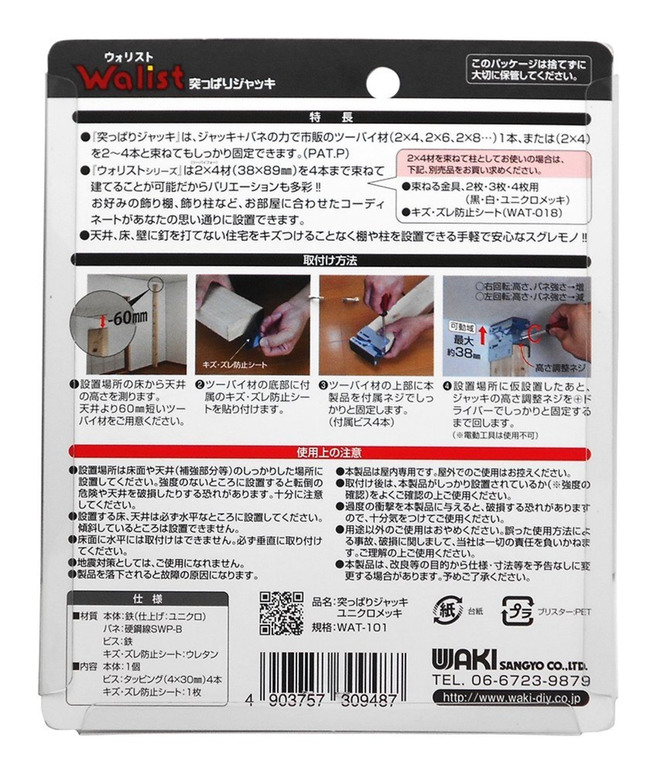 【限定セール】和気産業(Waki Sangyo) Walist ウォリスト 突っ張りジャッキ ユニクロメッキ 1個入 DIY 壁面収納 突っ張り WAT-101