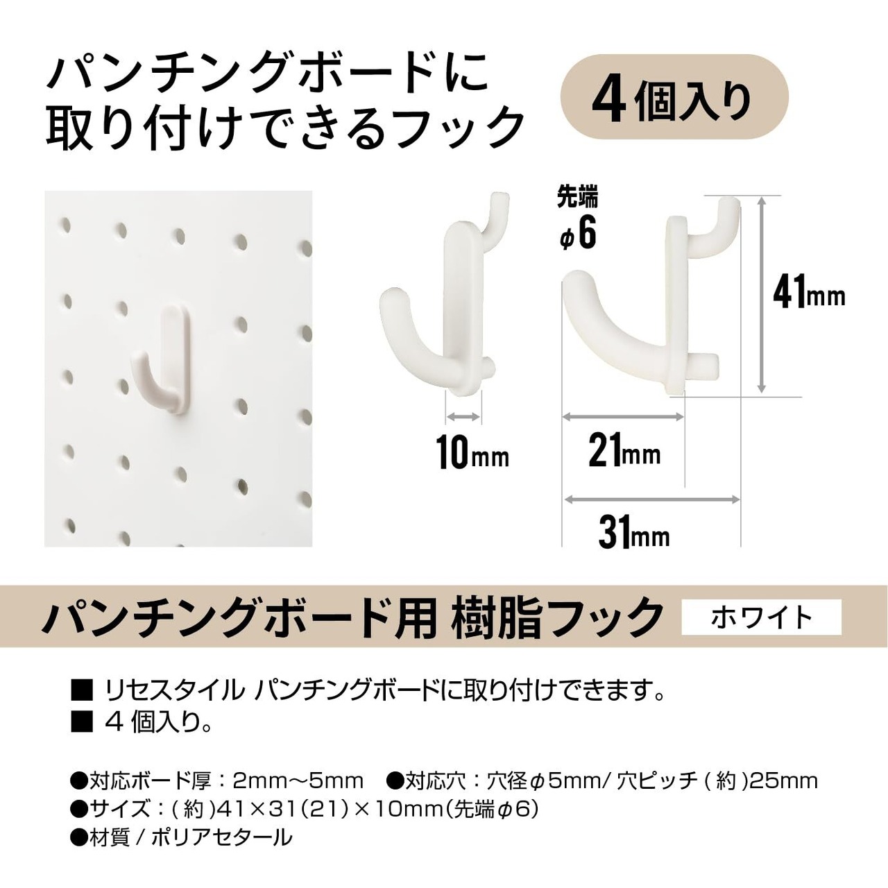 JEJアステージ(JEJ Astage)リセスタイル パンチングボード用 樹脂フック 小物 整理 W10×D31×H41
