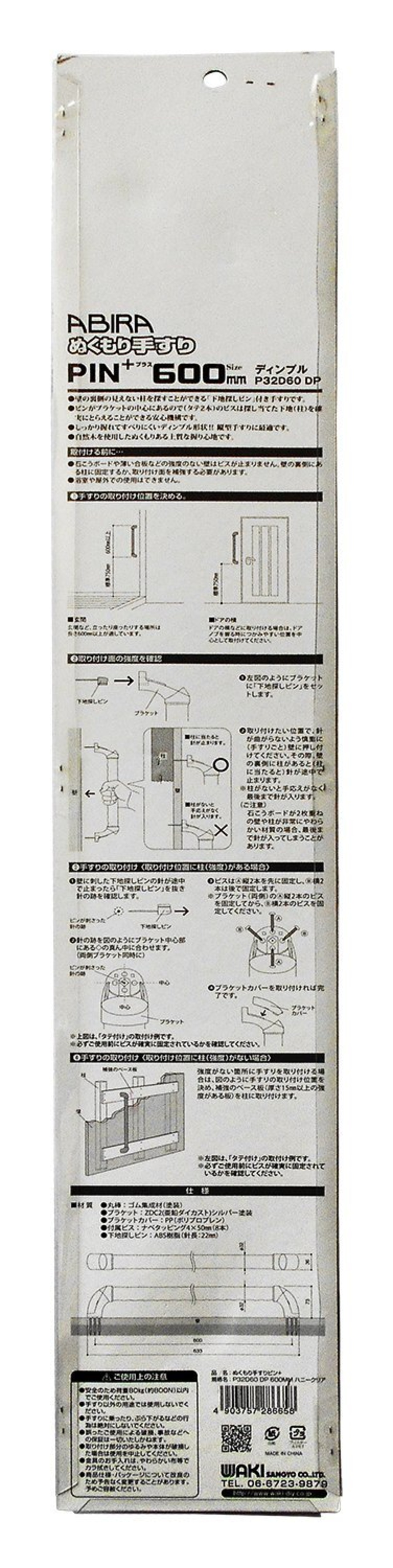 【特別価格】WAKI ABIRA ぬくもり手すりPIN+ プラス ディンプルタイプ 600mm 直径32mm ハニークリア