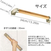 てすり 壁掛け 安全・安心 屋内用 木製手すり 縦横兼用 丸棒 ディンプル付 お風呂 浴槽 手すり 手摺 滑り止め 介護用品 お風呂用品 入浴介助 立ち上がり補助 高齢者 子供 妊婦 転倒予防 滑りにくいデザイン ネジ固定 取り付け簡単 (34CM)