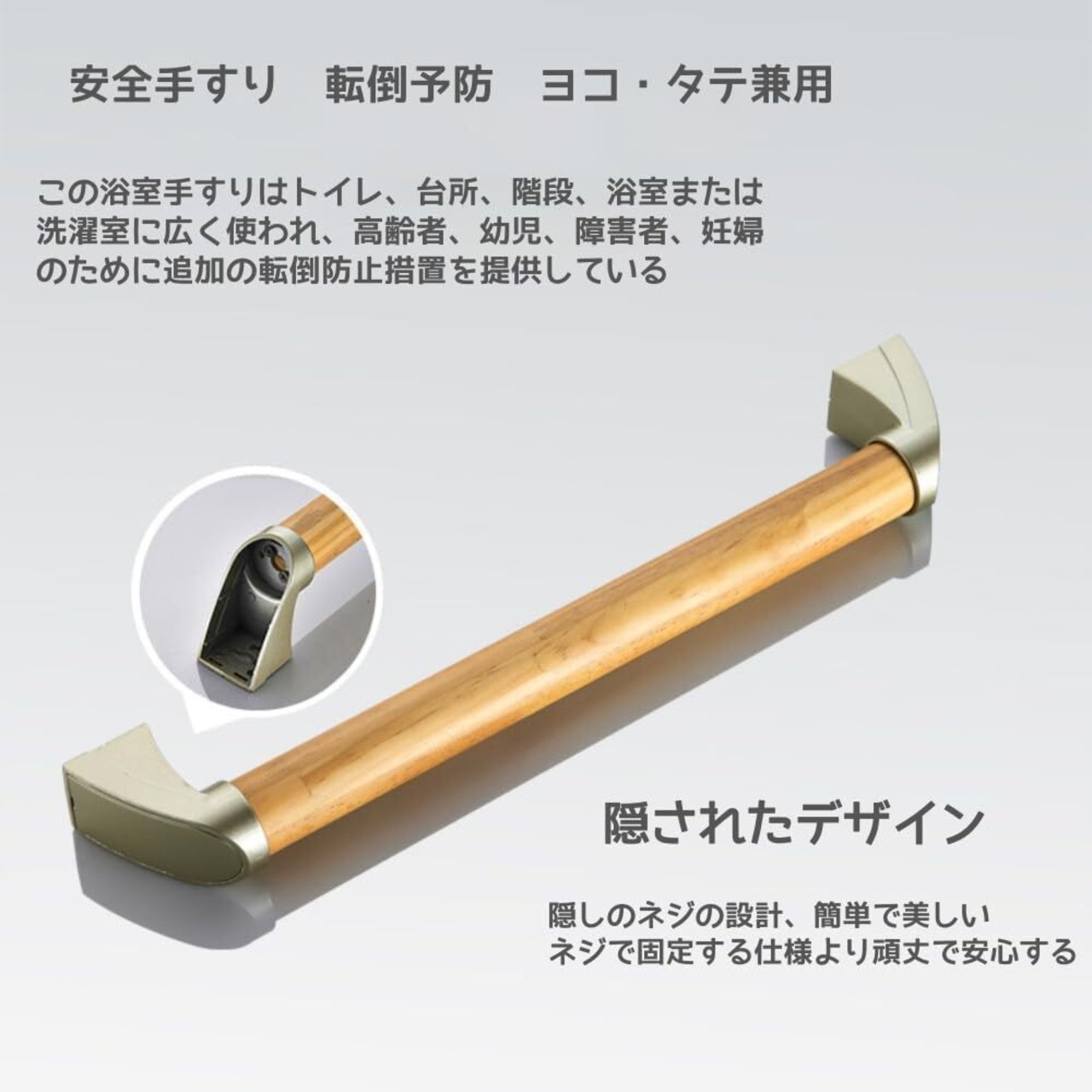 【取り付け簡単】隠された設置と取付の金具で簡単にインストールでき、金具はしっかりと取り付けると隠れます。手すりはお風呂場、トイレなどどこにでも取り付けることができます。設置の角度は任意に選択でき、家族に安全な使用環境を与えることができます。