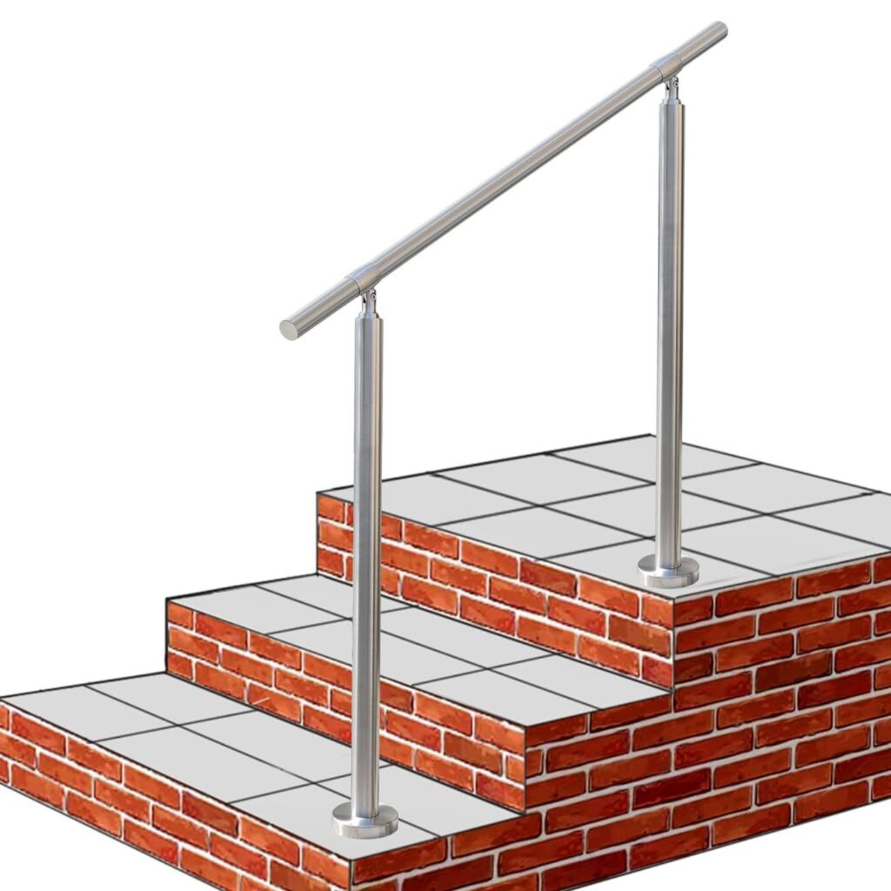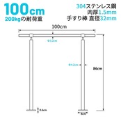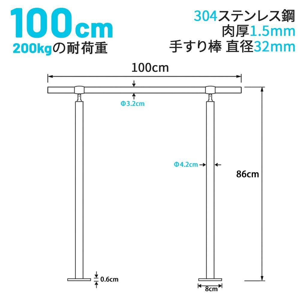 【特別価格】100x85cm 屋外 階段 手すり 304ステンレス製 手摺り DIY 玄関 角度調整可能 屋内屋外用 簡単な取り付け 荷重200kg 直径32ミリ肉厚1.5ミリ, 銀