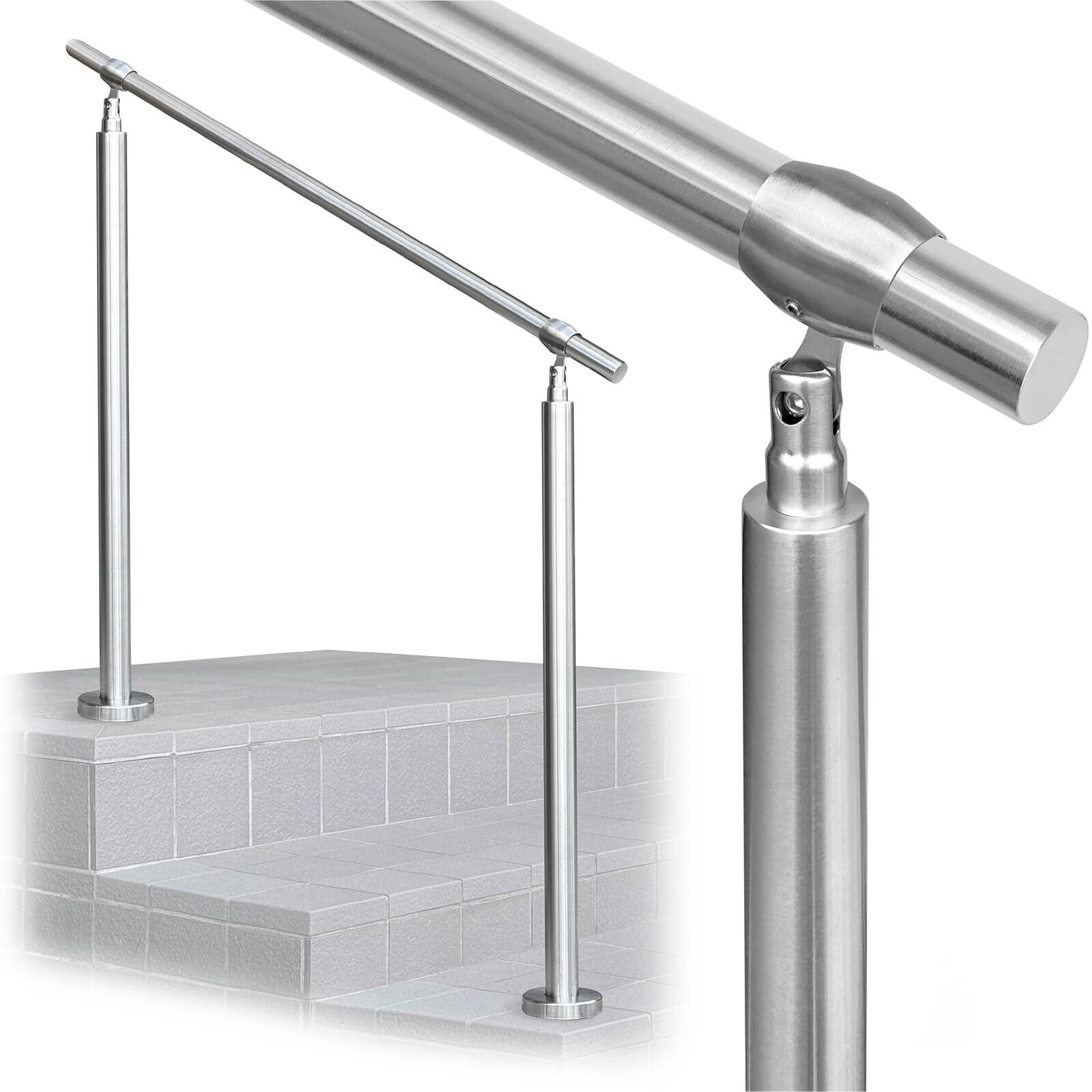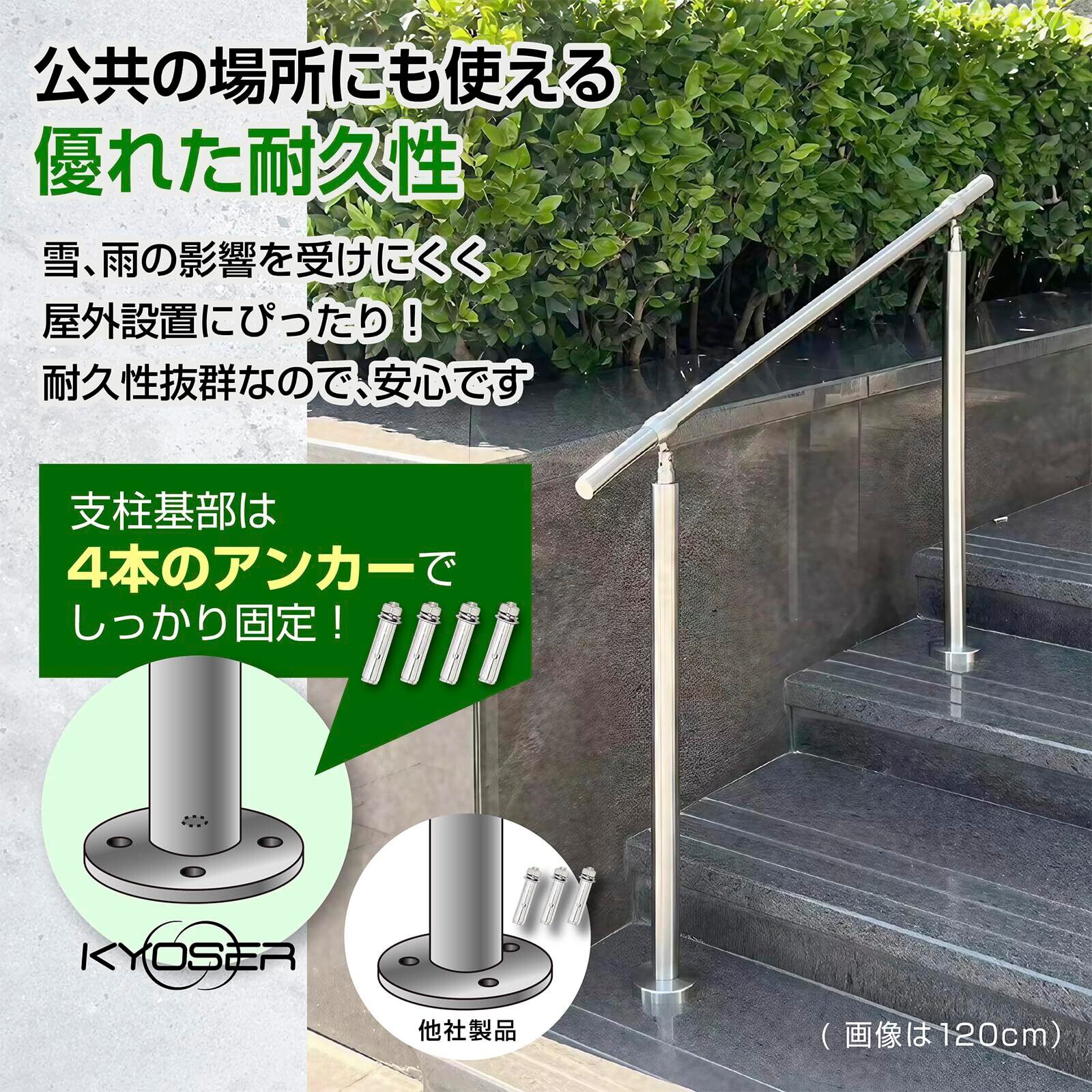 [KYOSER] 手すり ステンレス製 屋外 階段 簡単な取り付け 角度調整可能 DIY 玄関 屋内屋外用 60cm~120cm (シルバー, 140cm)