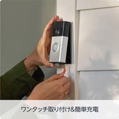 【ワンタッチ取り付け&簡単充電】ドアベルを充電後、ワンタッチで取り付け。Ringアプリのガイダンスにしたがって、簡単に設定可能。日本向けには取り付け台にマグネットを搭載しました。