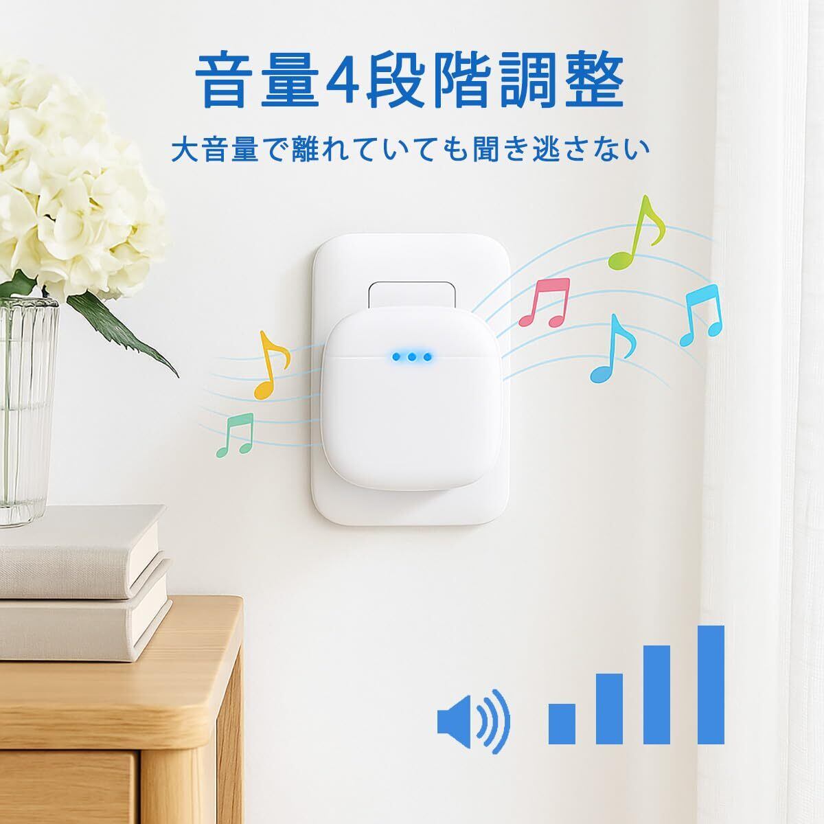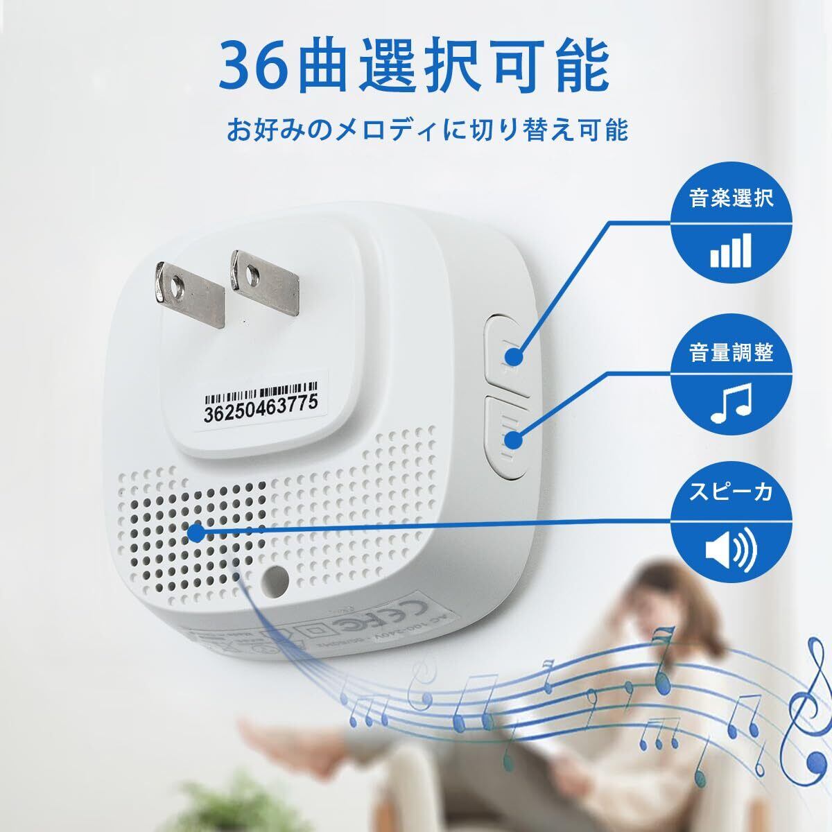 【36曲選択可能の音で呼び出し】 こちらのワイヤレスチャイムは大音量呼び出し音で、音量4段階調節でき、ボリュ—ム可変範囲は25dB~100dBです。36曲が選択可能で多種多様の環境と要求を満たされます。大音量で聴力弱い方にもお勧めします。