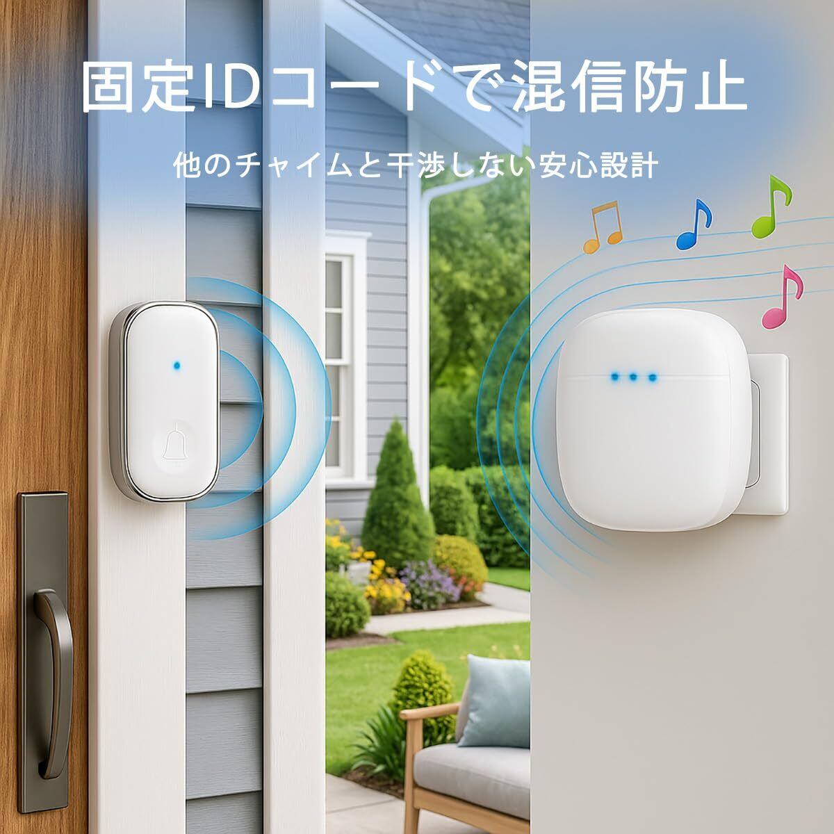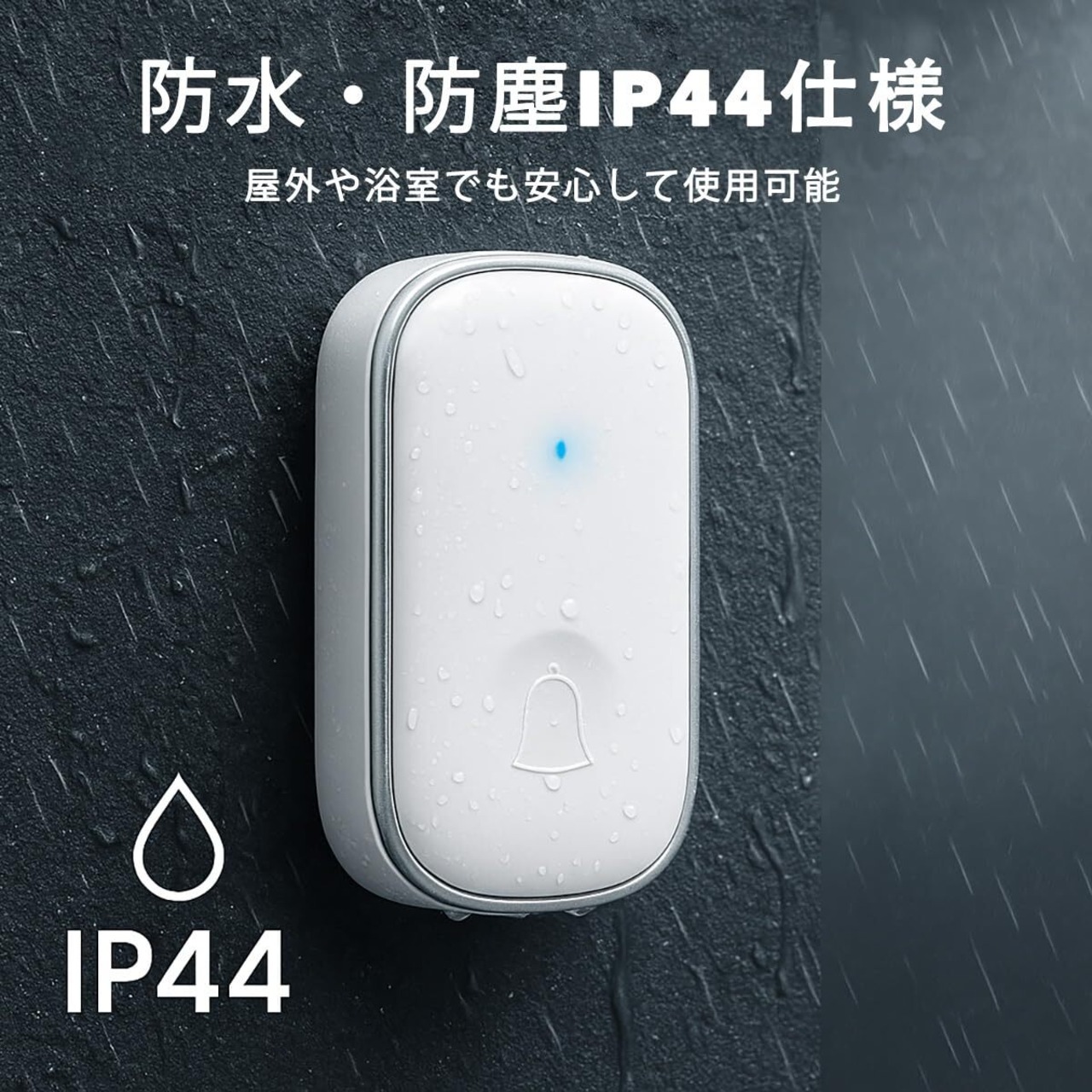 【混信なし&IP44防水】 送信機は固定IDコードにより、電波の妨害や混信などの心配はありません。耐久性と防水設計で、屋外や浴室でも使用できます。