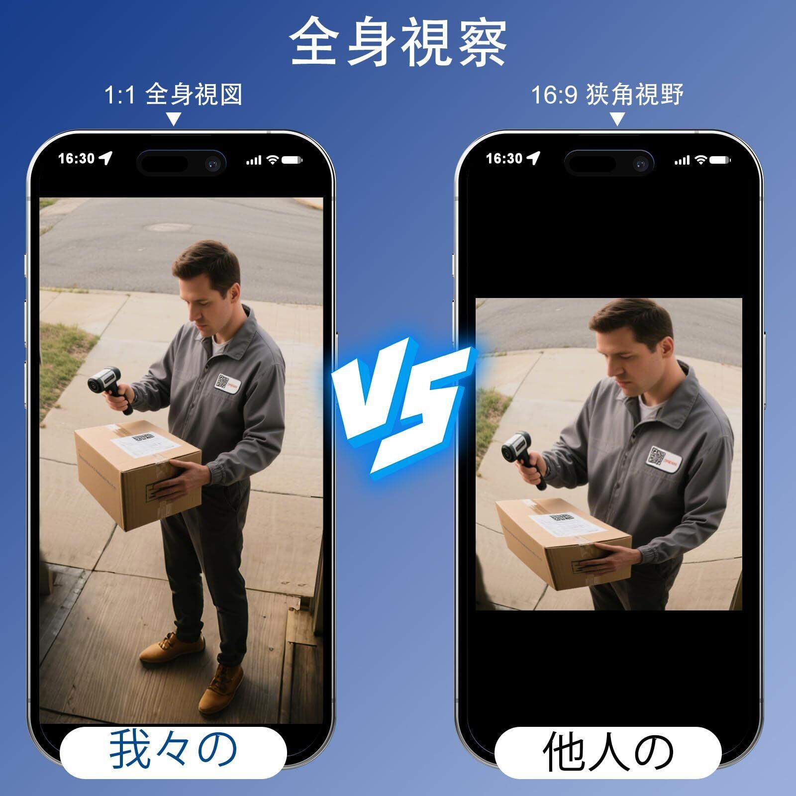 【2K HD 昼夜ビジョン】-昼間と同じくらい鮮明、暗闇でも。当社のワイヤレスドアベルカメラは鮮明な 2K 解像度を実現し、顔や車両のナンバープレートなどの細部をズームして確認できます。10 メートルの赤外線暗視機能を搭載しているため、真っ暗な環境でもプロ並みに玄関を監視できます。