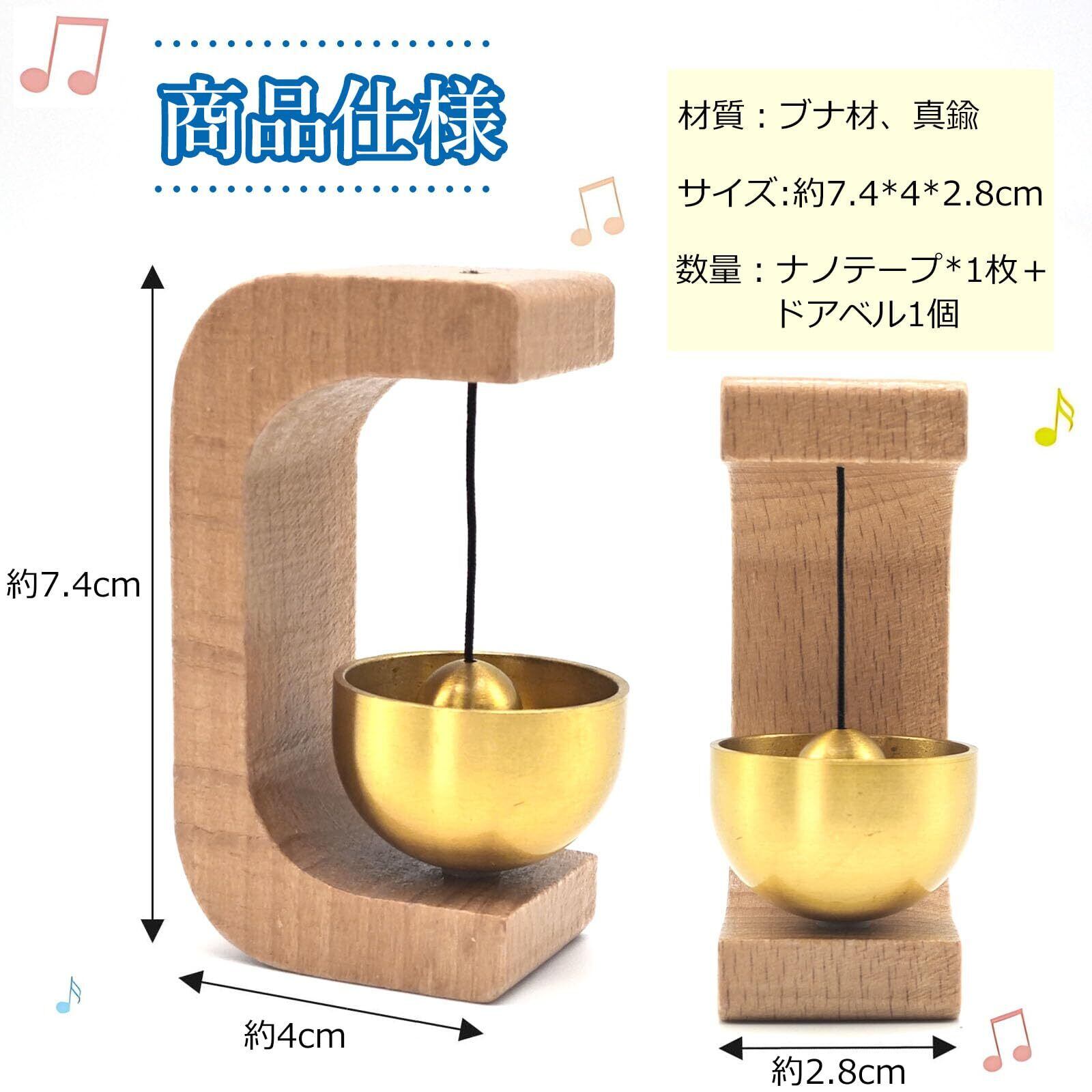 JINGYOU ドアベル 玄関チャイム ドア鈴 真鍮 木製 両面テープ付き 引き戸 鈴 玄関 ベル 店舗用 壁掛け 取付簡単 ホーム 喫茶店 飲食店用 冷蔵庫ドア 装飾 贈り物