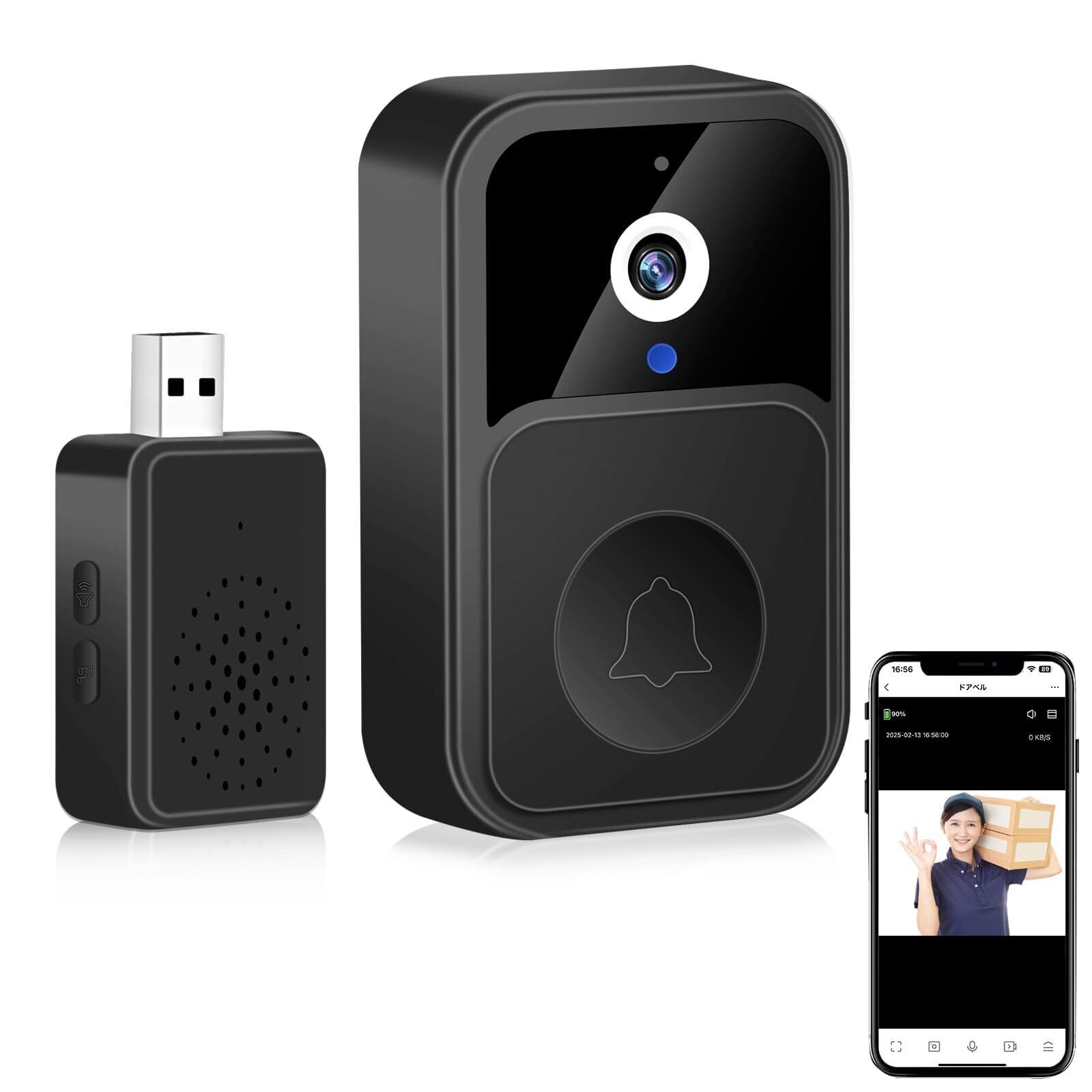 【2025最新】外出先からも通話可能 ビデオドアベル ワイヤレス スマホドアベル インターホン ビデオドアホン 配線工事不要 WiFi ドアチャイム 充電式 防犯カメラ 屋外 双方向音声 リアルタイムビデオ通話 ios android対応 日本語説明書付き