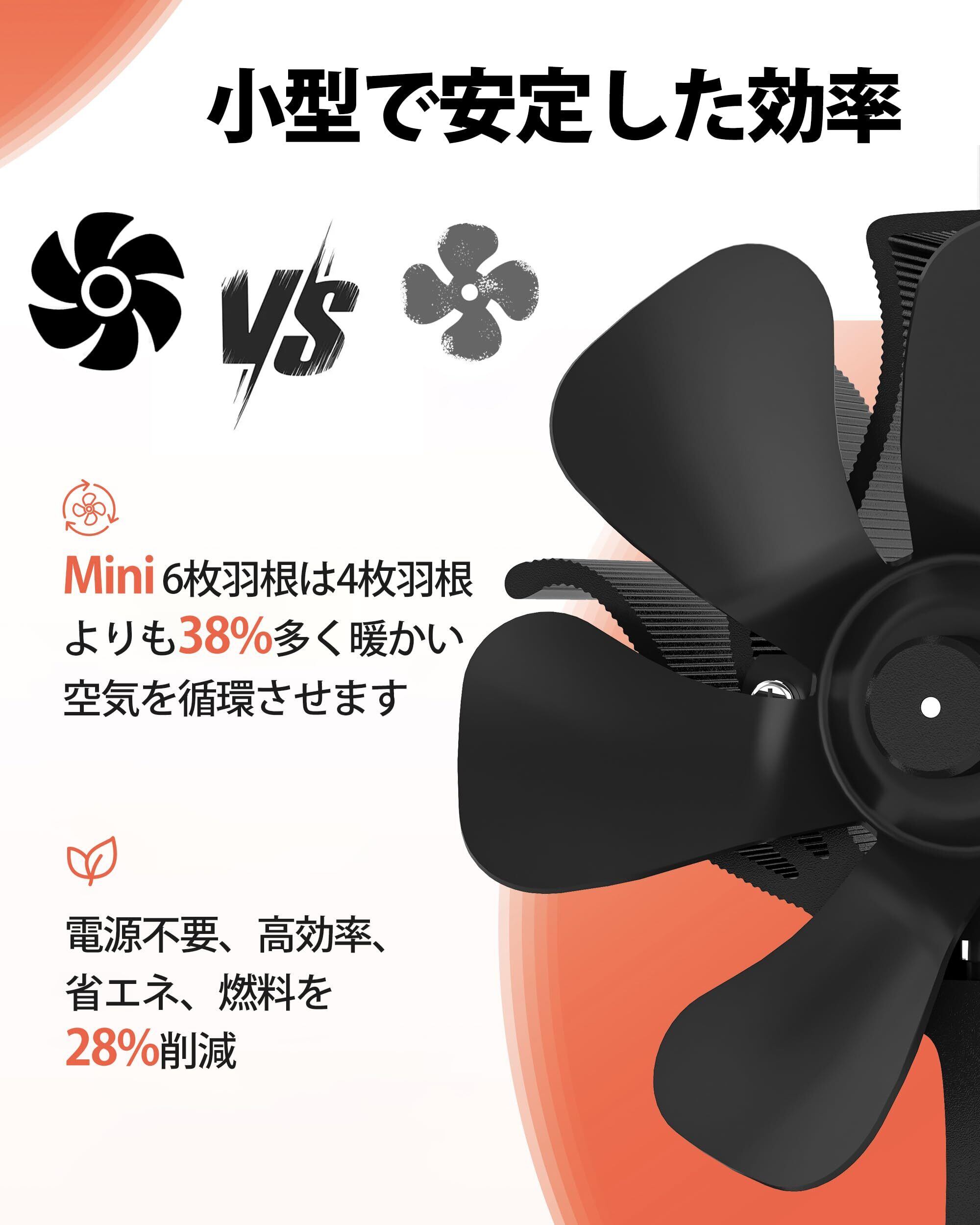 Signstek ストーブファン 石油ストーブ 薪ストーブファン エコ 静音 キャンプ用 火力熱炉扇風機 空気循環 Mini 6枚羽 小型 薪ストーブ 扇風機 電源不要 省エネ 暖炉用 過熱保護