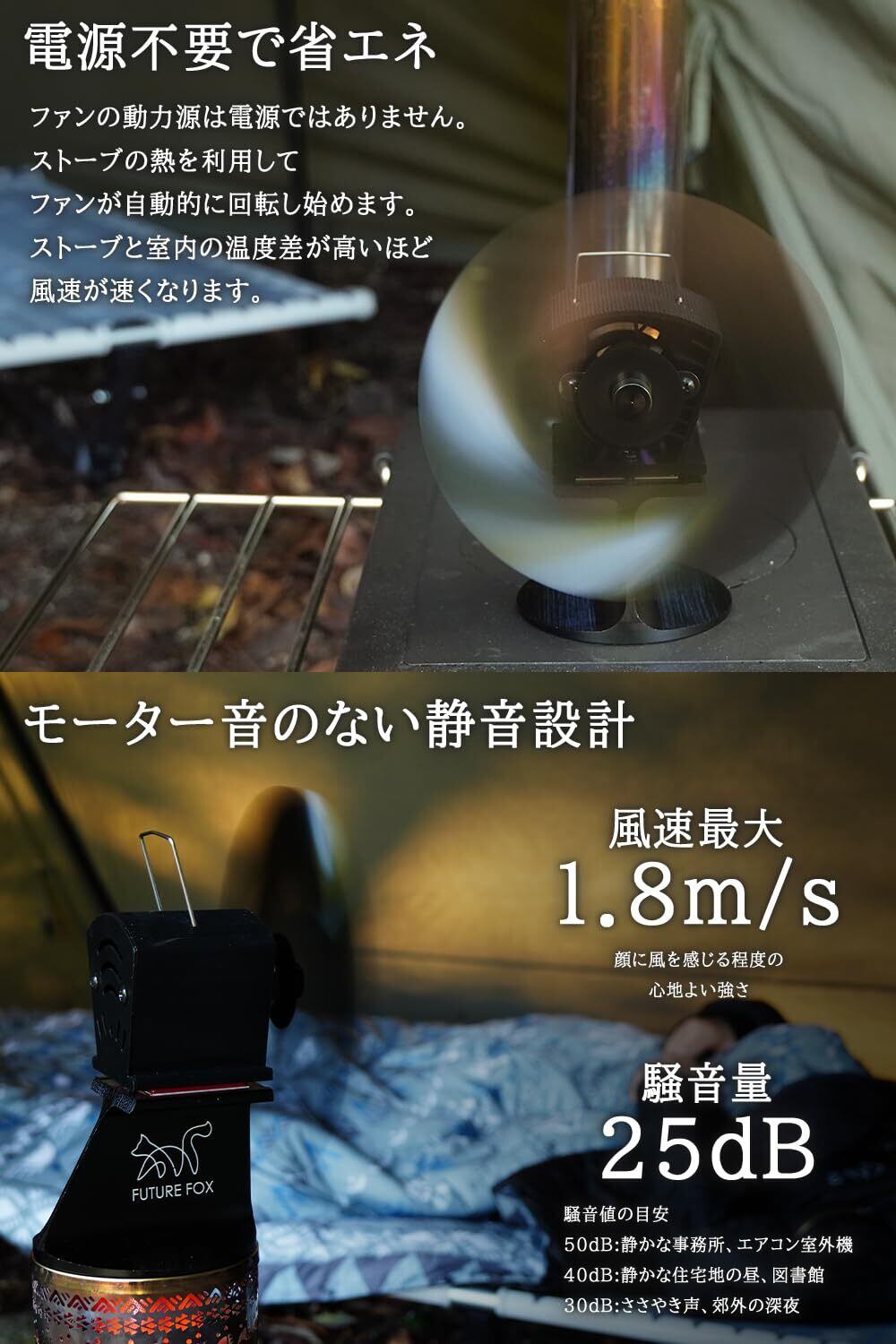FUTUREFOX FOX-FAN ストーブファン 最新型 4枚羽 薪ストーブ エコファン ヒーターアタッチメント・薪ストーブ各種対応