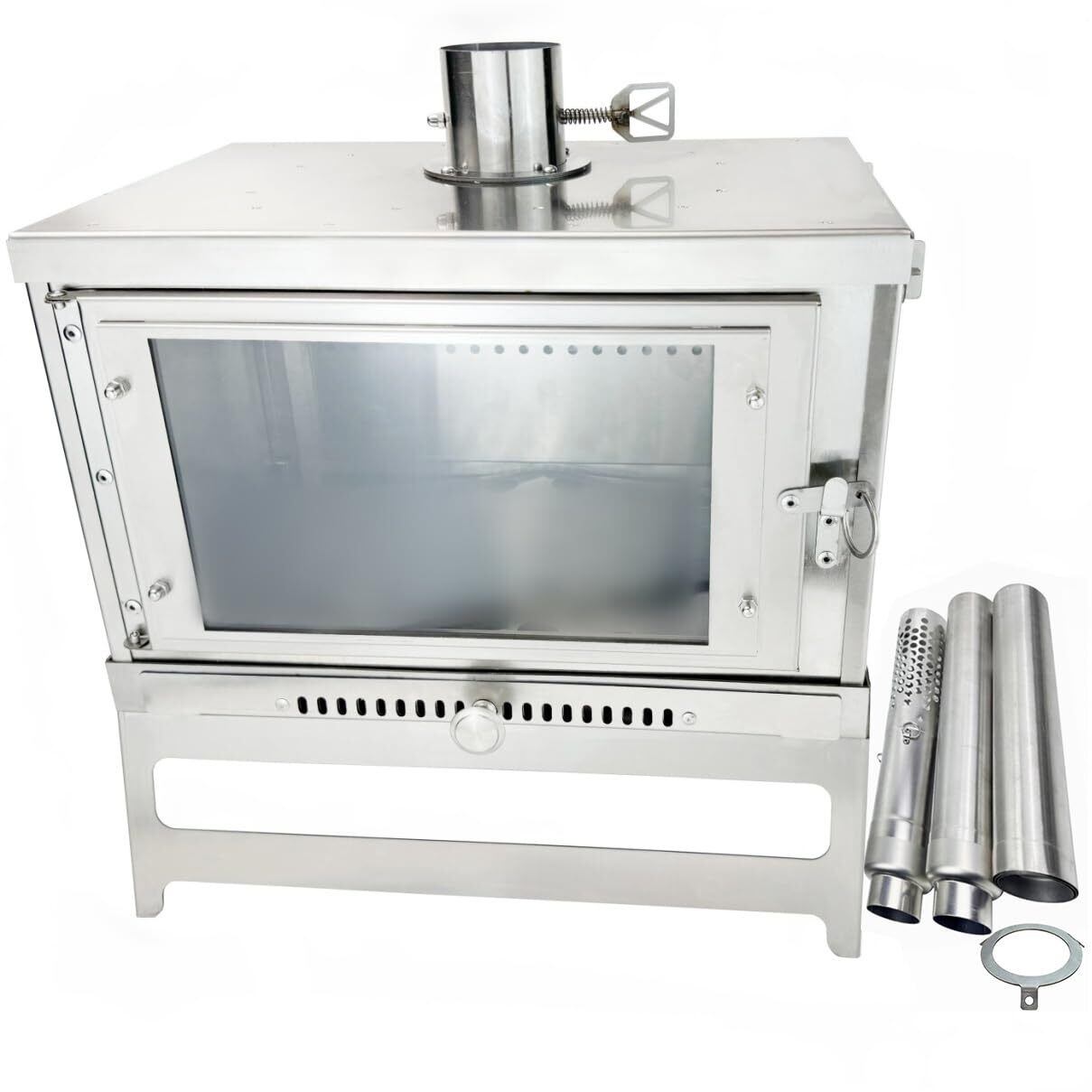 solotour 【二次燃焼】ガラス 薪ストーブ 組み立て コンパクト スパークアレスター ダンパー付煙突*収納バッグ付き サイズ 38*25*25
