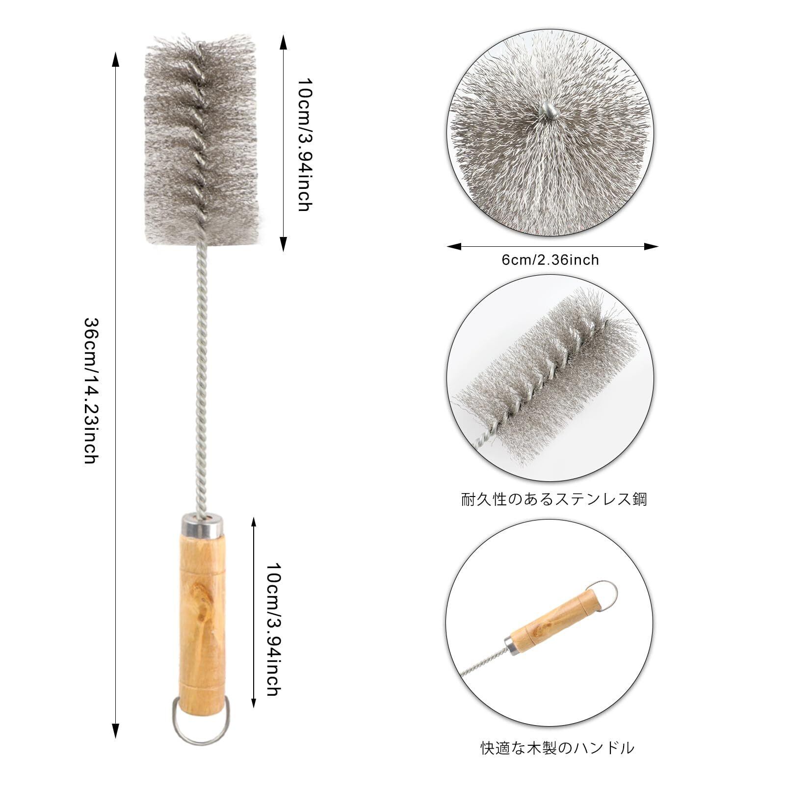 【サイズ】(約): 薪ストーブ ブラシの全長は36cm、毛の直径は60mm、毛の長さは100mm、木製ハンドルの長さは100mmです。