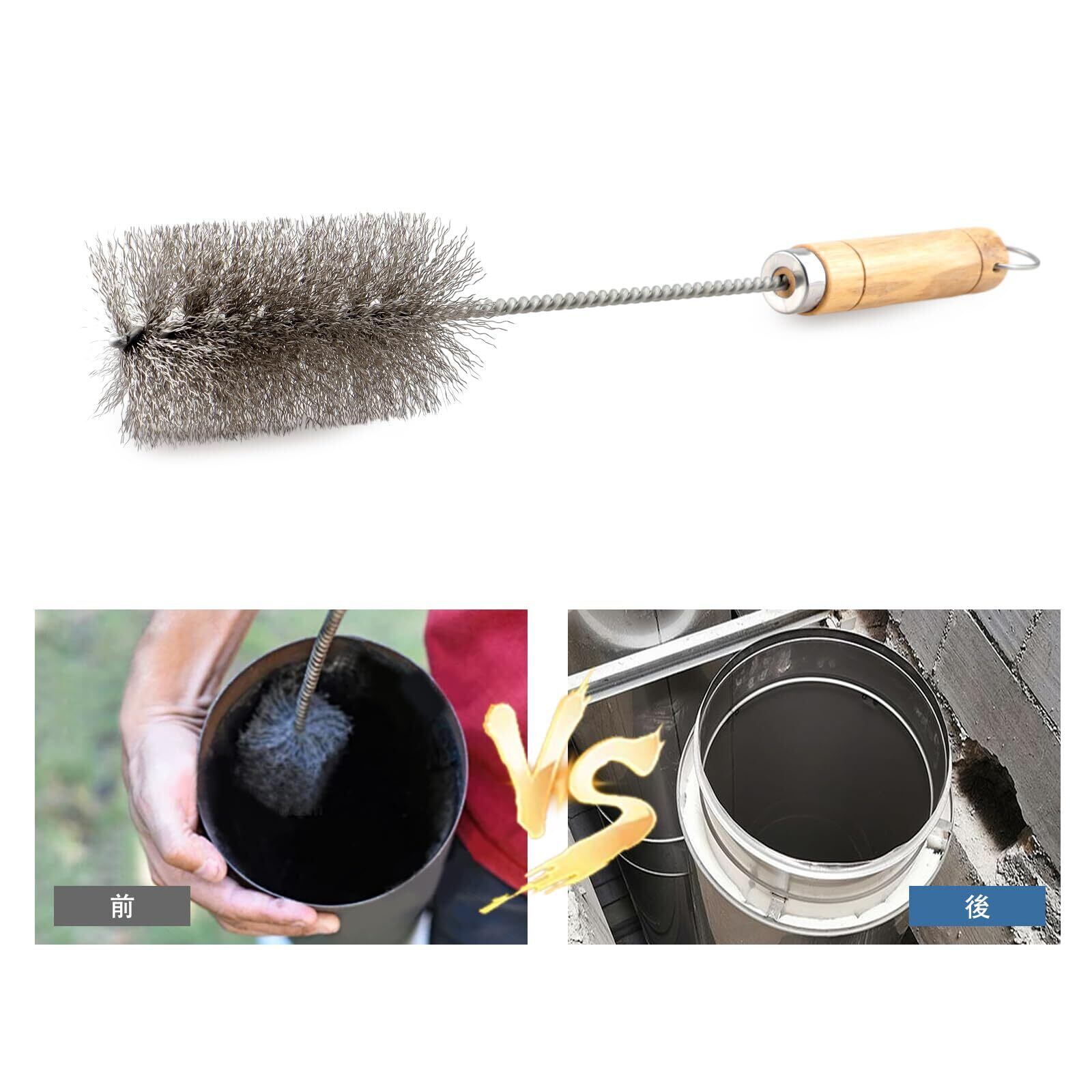 【高品質素材】: 煙突掃除ブラは、弾力性のある高品質のステンレス鋼の毛でできており、非常に柔軟で壊れにくいです。 硬い毛の強度により、煙突パイプを貫通しやすくなり、煙突パイプを傷つけることなく徹底的な清掃を行うことができます。