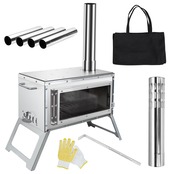 【特価セール】MOON LENCE 薪ストーブ 二次燃焼 耐熱ガラス窓 煙突 コンパクト キャンプストーブ テーブル暖炉 ウッドストーブ テント用 焚き火台コンロ BBQ 調理 暖炉 冬 収納袋付き