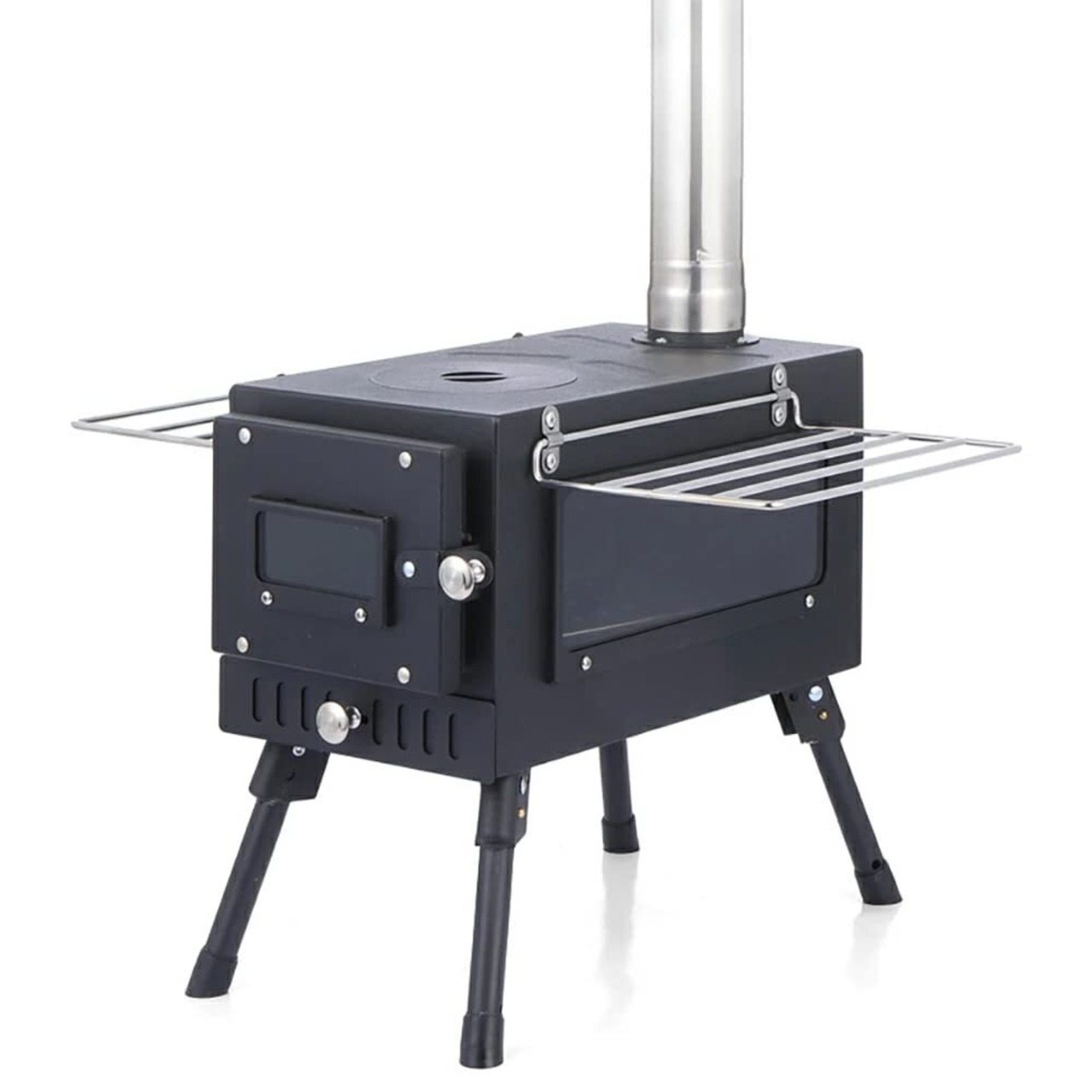 ■【約150cm、分割式煙突でお好みの高さに】 煙突は分割式、使用するシーンに合わせて5段階の高さに調節することができます。 ■【独立大容量灰落ちはご】木材入り口と分離して、薪ストーブの整理しやすいです。