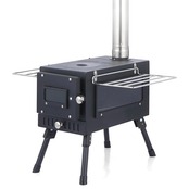 ■【製品詳細】:薪ストーブ 【展開サイズ】:40x53x38cm 、【折りたたみサイズ】:40x21x24cm 、 【包装サイザ】:43x27x29cm、【重量】:(約)8.2kg 、【材質】:本体:冷間圧延スチール製、ガラス部位:耐熱ガラス 【原産国】:中国,■セット内容: 手袋×1,収納バッグ×1,薪ストーブ本体×1, 煙突管5本(直径6cm、32cm*4、22cm*1), スパークアレスタ×1.