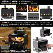 二次燃焼:薪ストーブの正面、底部と背面に複数の吸気口と配置され、一次燃焼で燃え切らなかった可燃性ガス(煙)へ新たに暖かい空気を送り込んで再度燃焼させ、燃焼効率を向上させ、煙が少なく、火力も高くなり、環境に優しい
