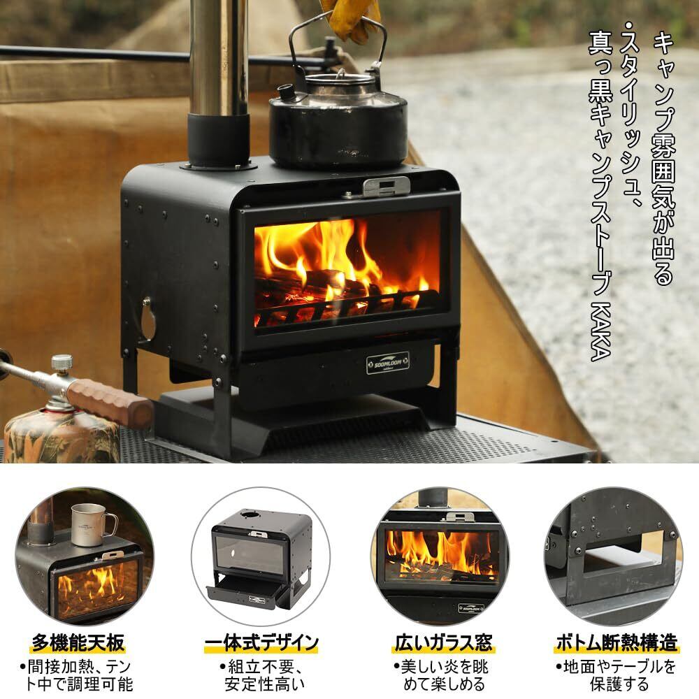 Soomloom薪ストーブKAKA真っ黒キャンプ暖炉ファイヤープレース直火暖取りテント調理バーベキューBBQ焚き火コンロポータブルキャンプアウトドアオープンファイヤー
