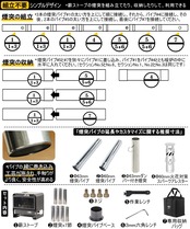サイズ:組み立てた時は(約)L295xW225xH1800mm、煙突の高さは(約)152mm、収納時は(約)29.5x22.5x28cmなコンパクトサイズに収納でき、持ち運び楽々。