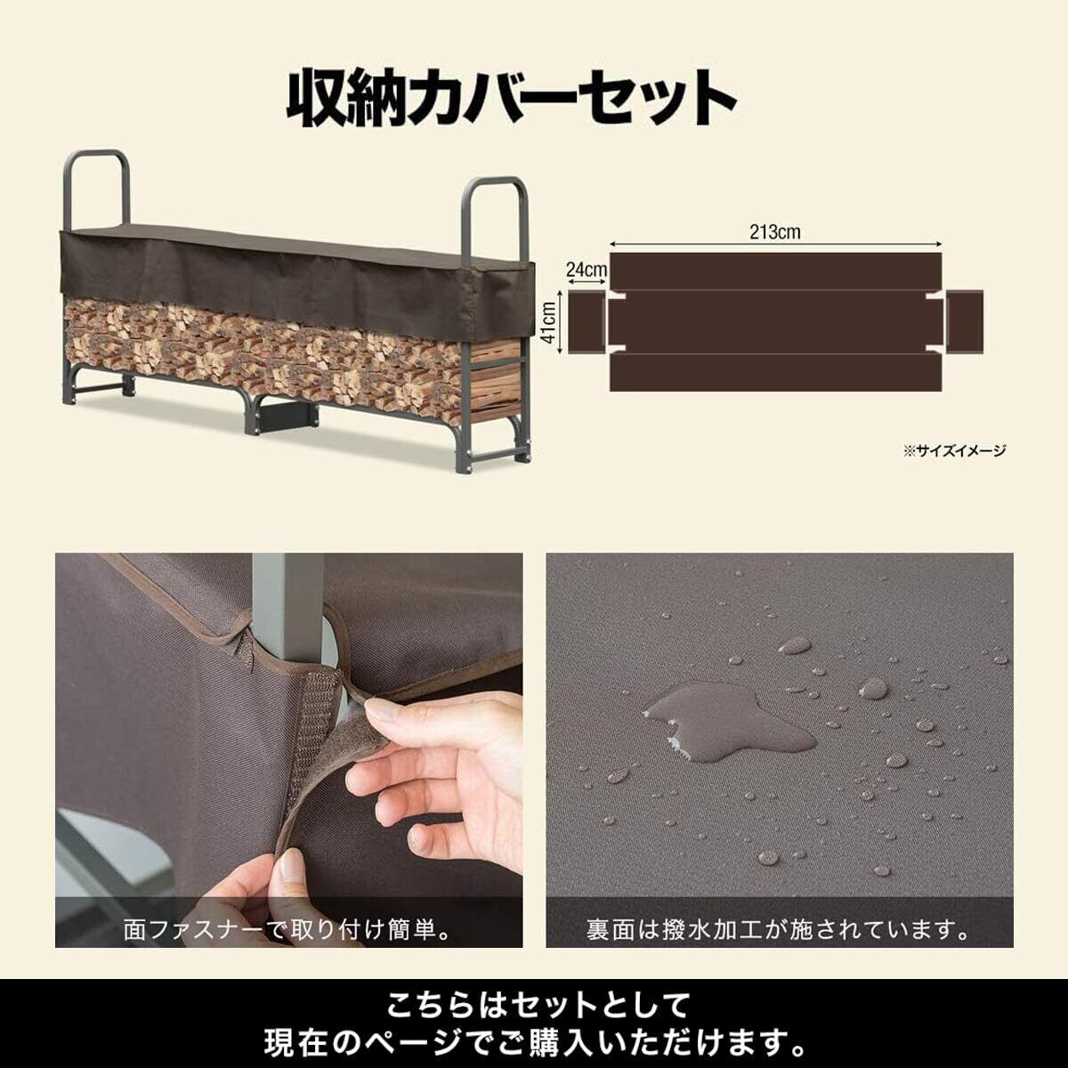 FIELDOOR ログラック/薪ストッカー 【ワイドタイプ 幅205cm】 + 収納カバー 焚火 ストーブ 通気 乾燥 耐荷重1000kg 簡単組立